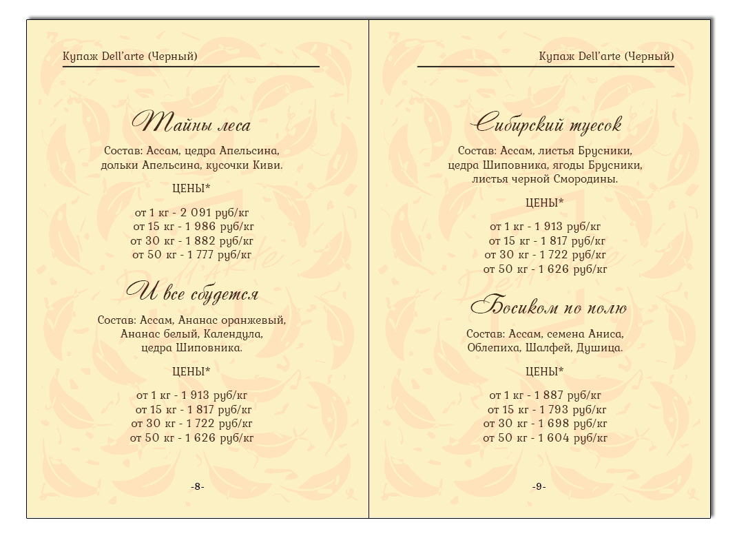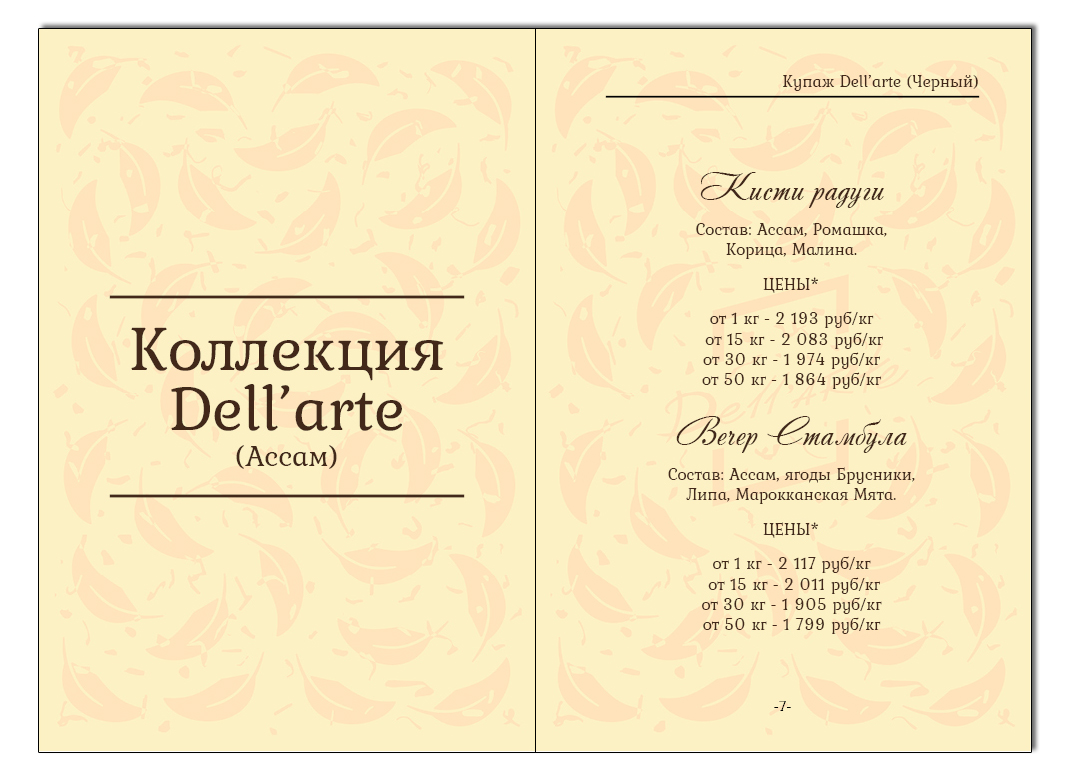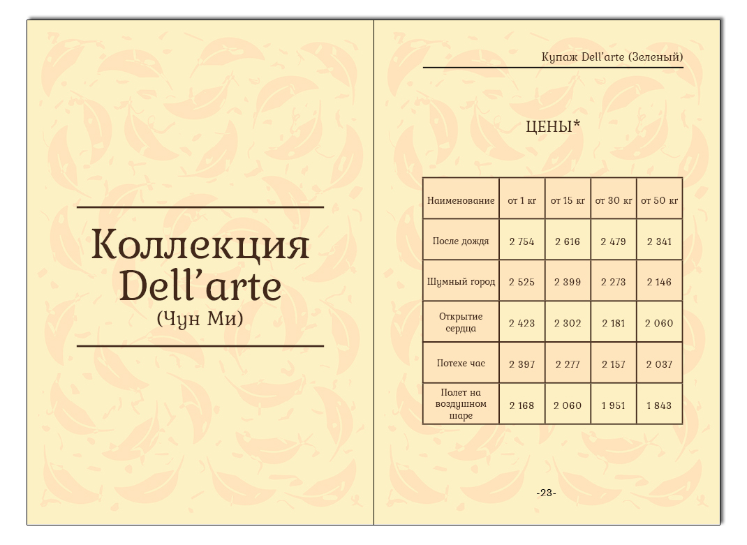 Меню Dell'arte