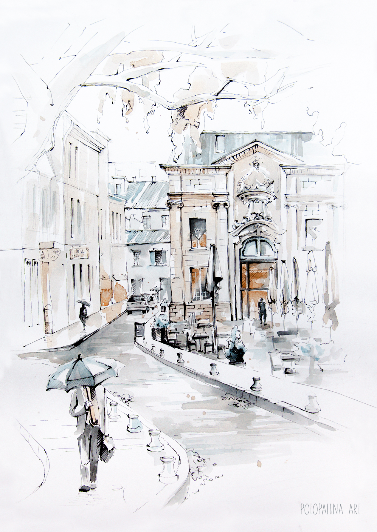 акварель+тушь