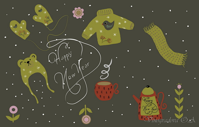 Картинки в детском стиле,на тему рождества,нового года,вязанья и зимних вещей.Зайчики,снеговики,мишка.
