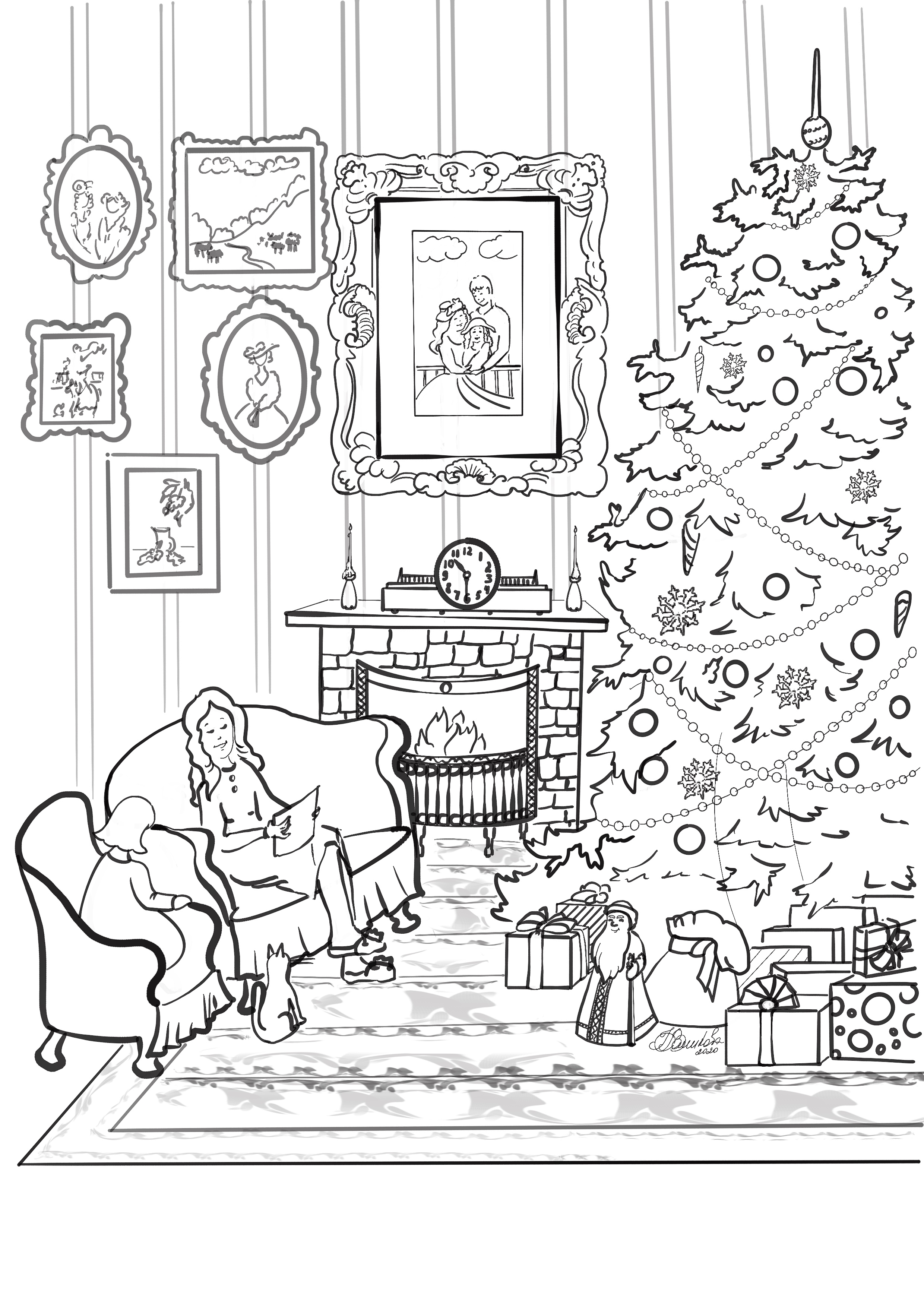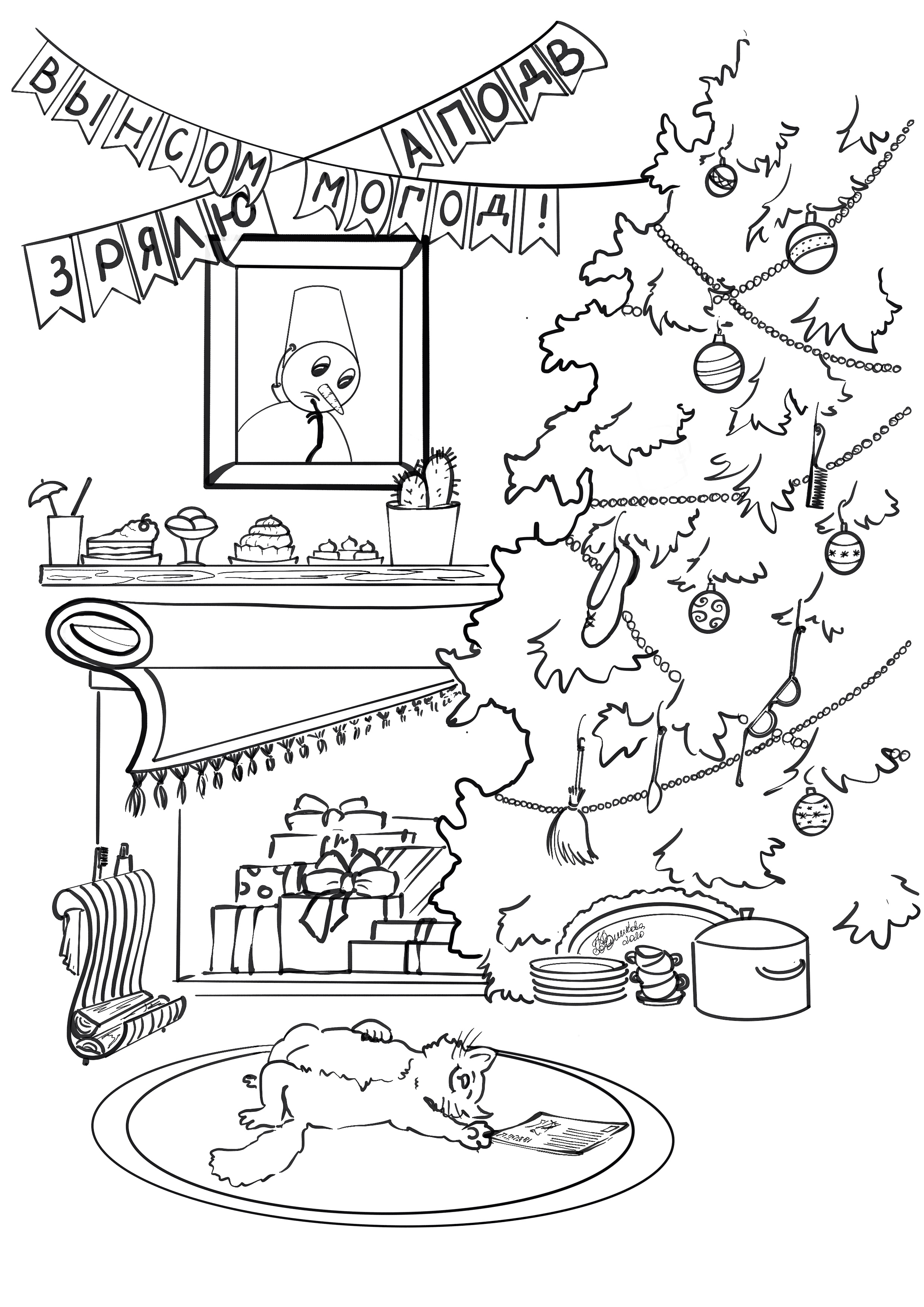 Некоторые примеры раскрасок, созданные для детской книги. В том числе раскраска-загадка.