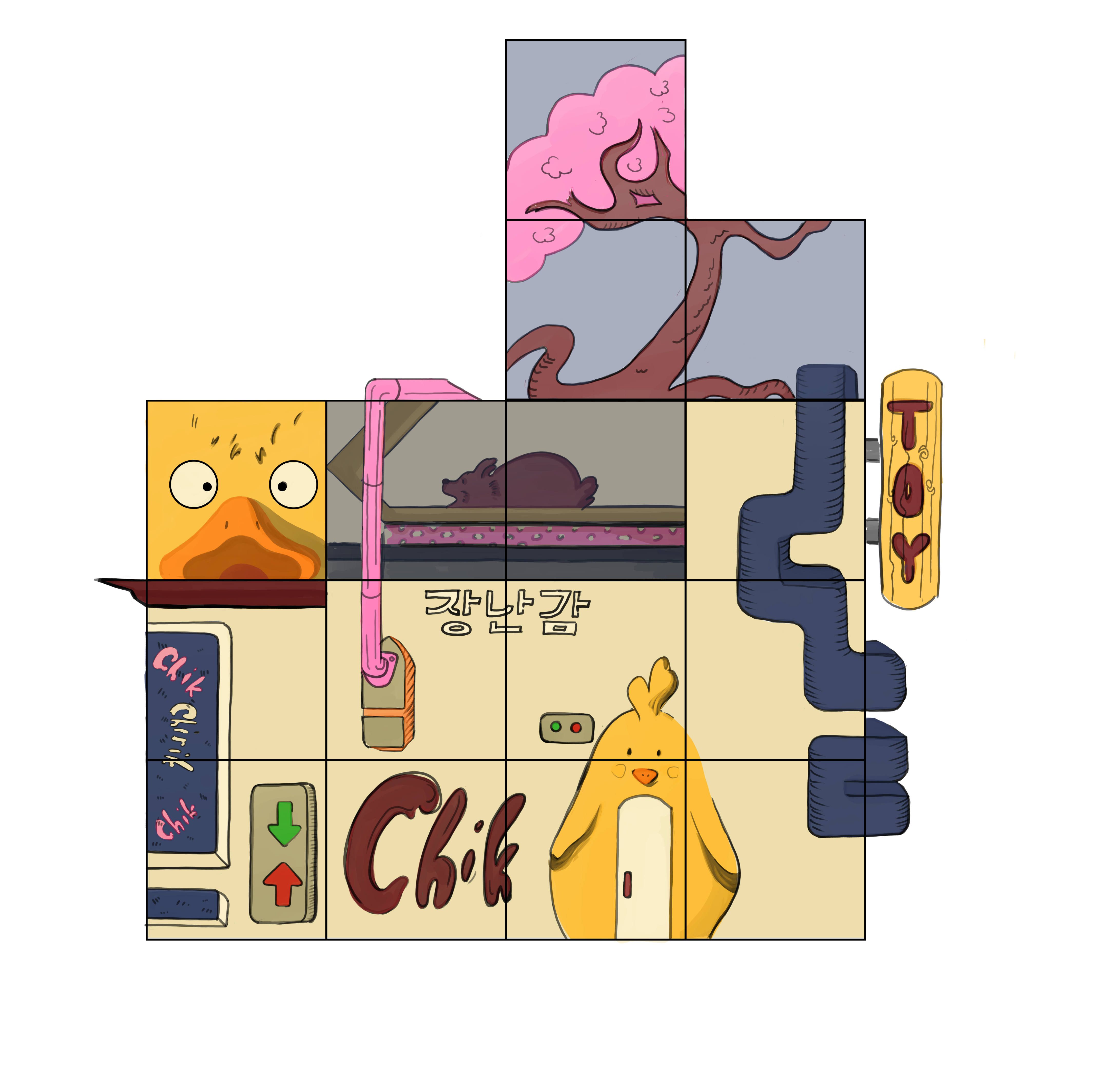 Иллюстрации к 2D игре. Кубик Рубика – завод детских игрушек.