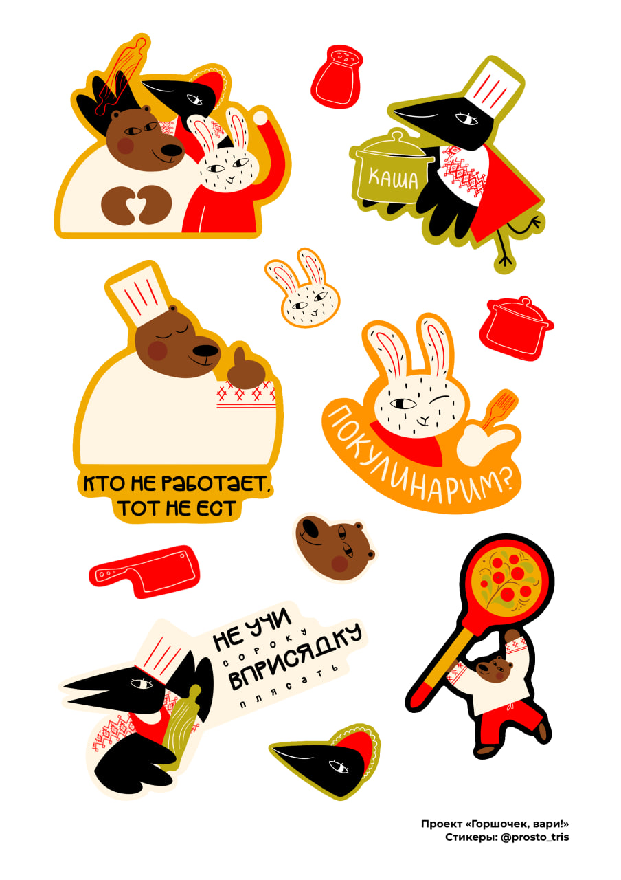 В этом альбоме опубликованы учебный (проектный) набор стикеров и заказные стикерпаки для телеграмма