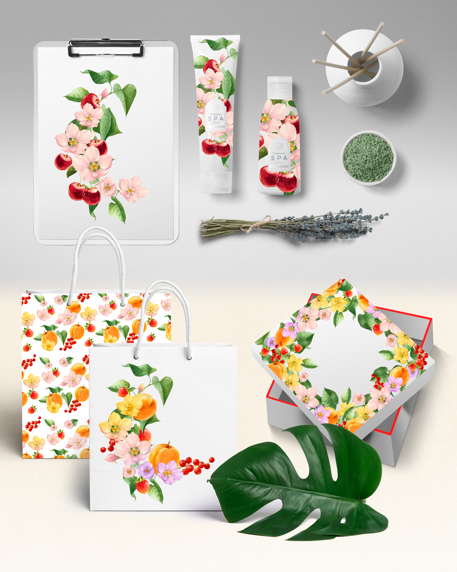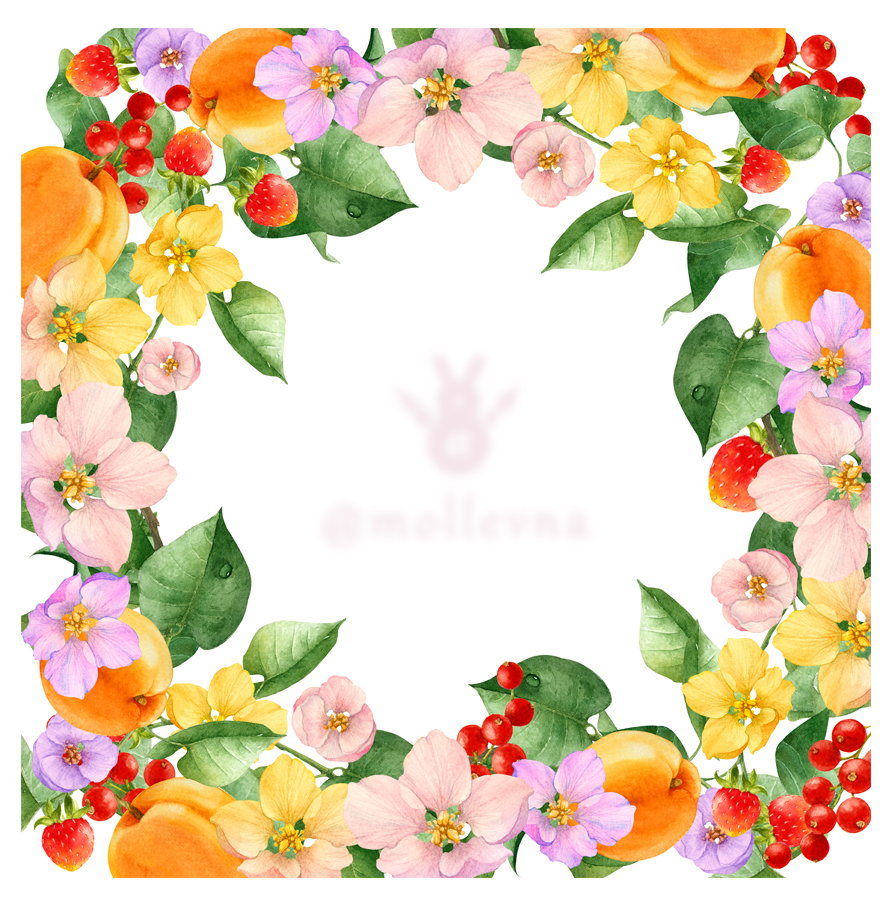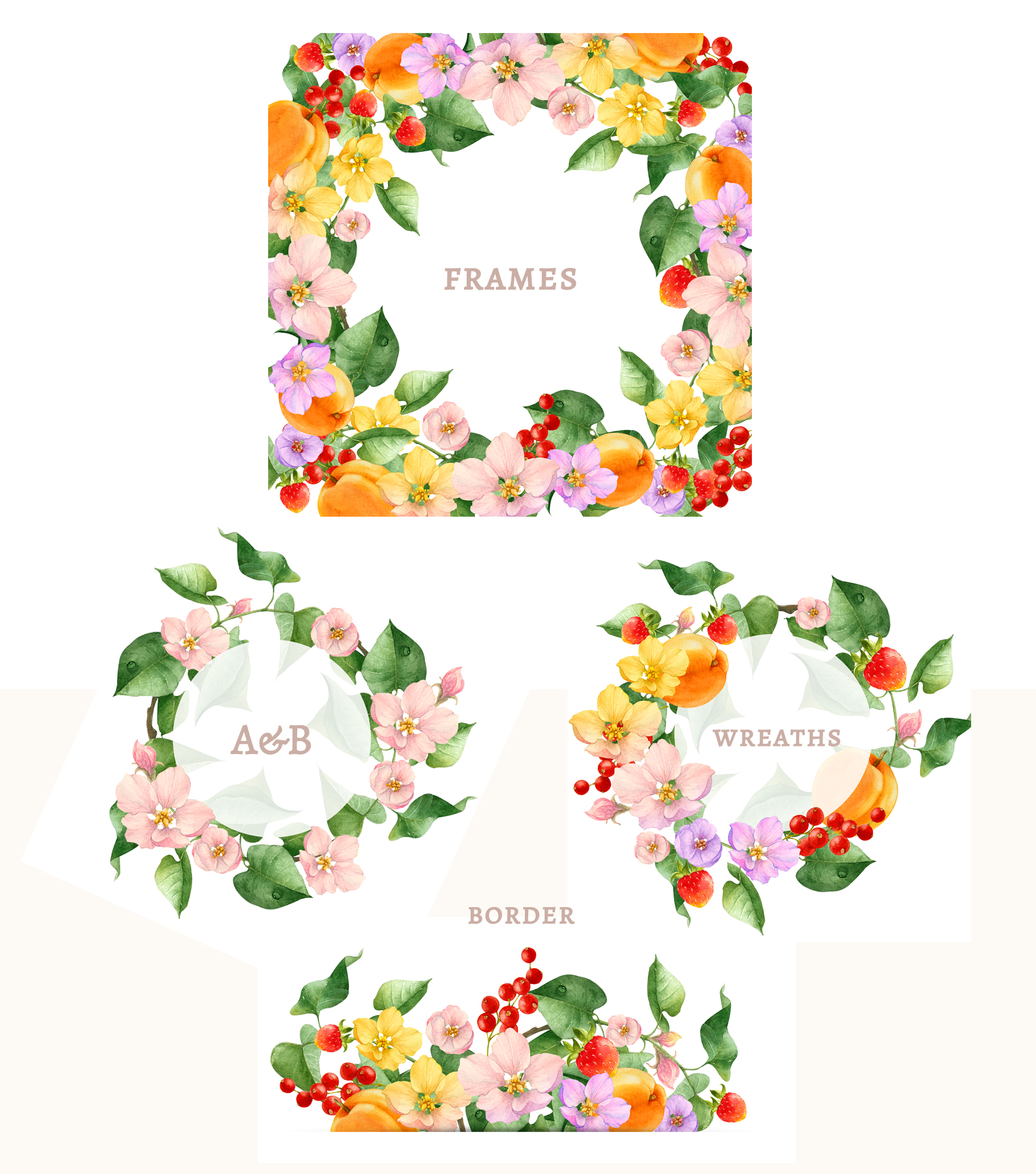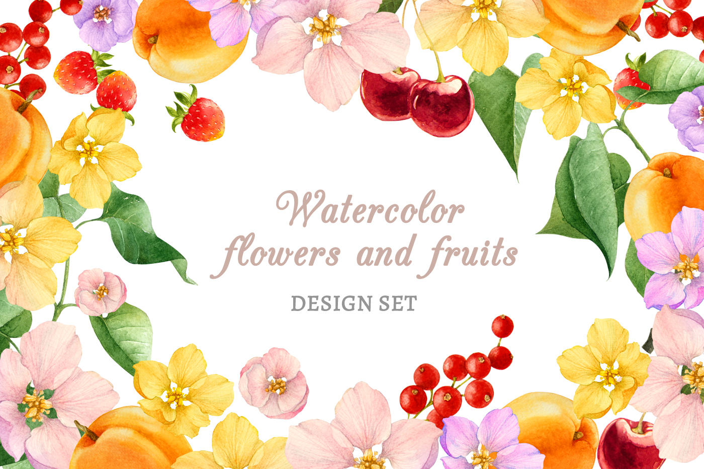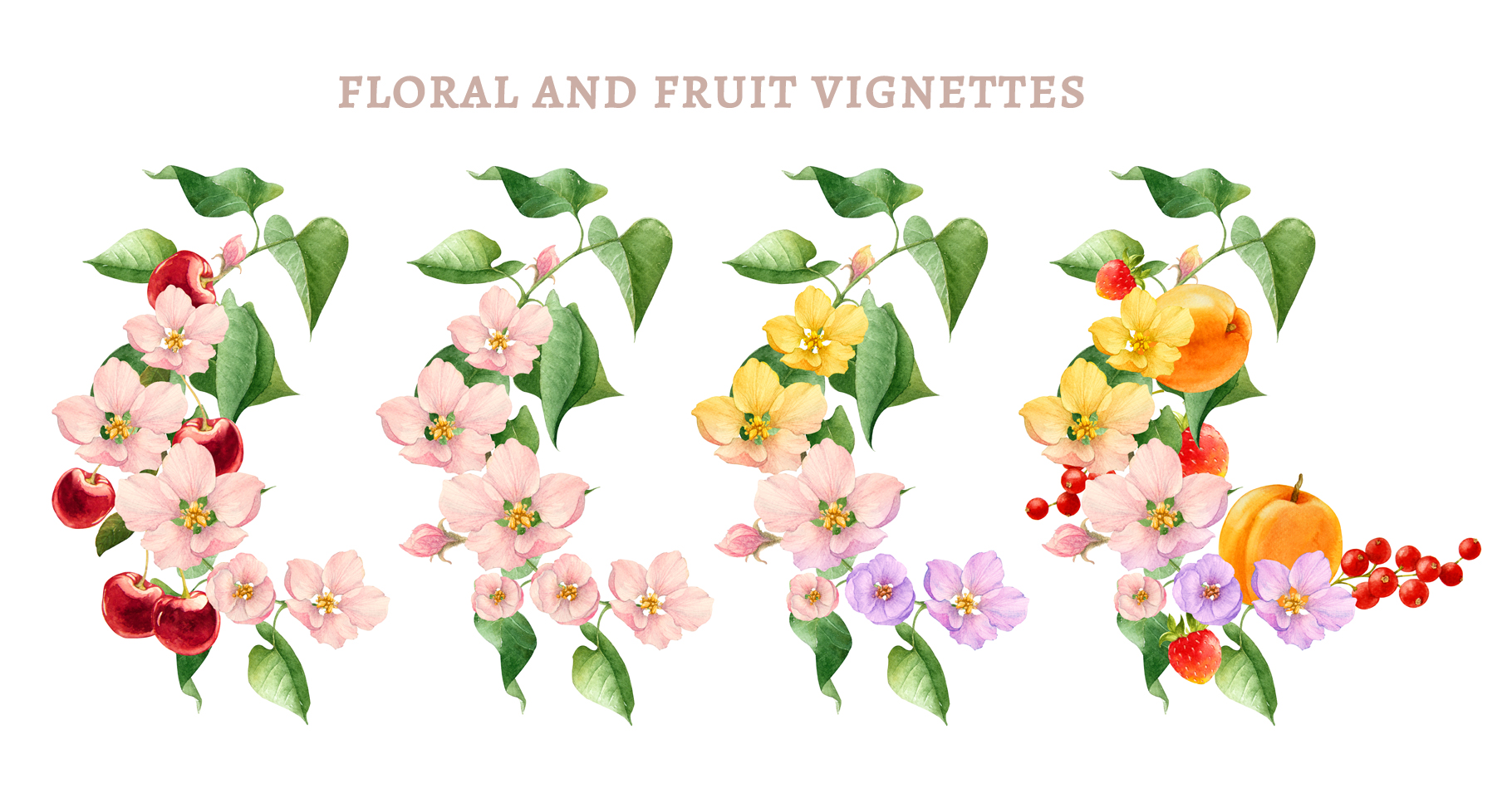 Набор акварельных объектов. Ботаническая иллюстрация.