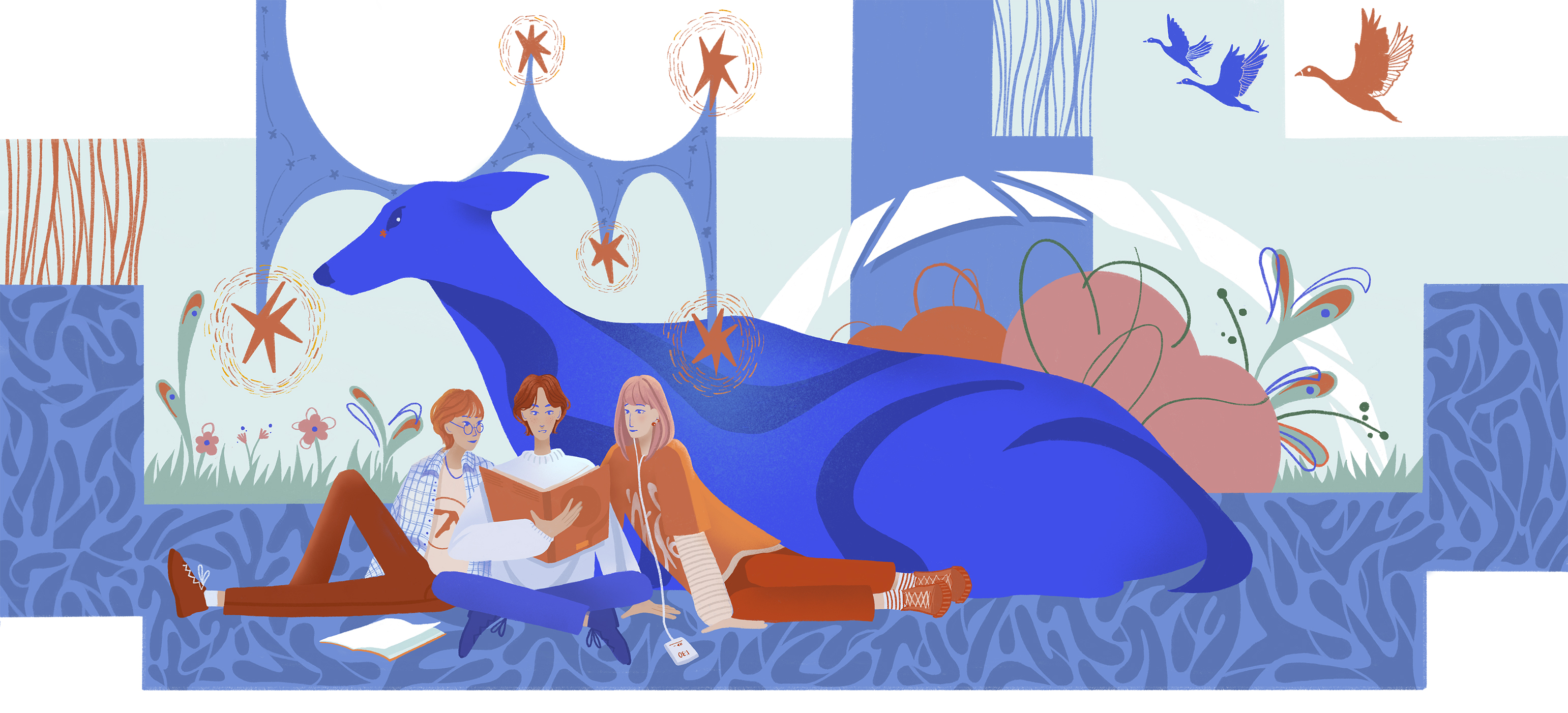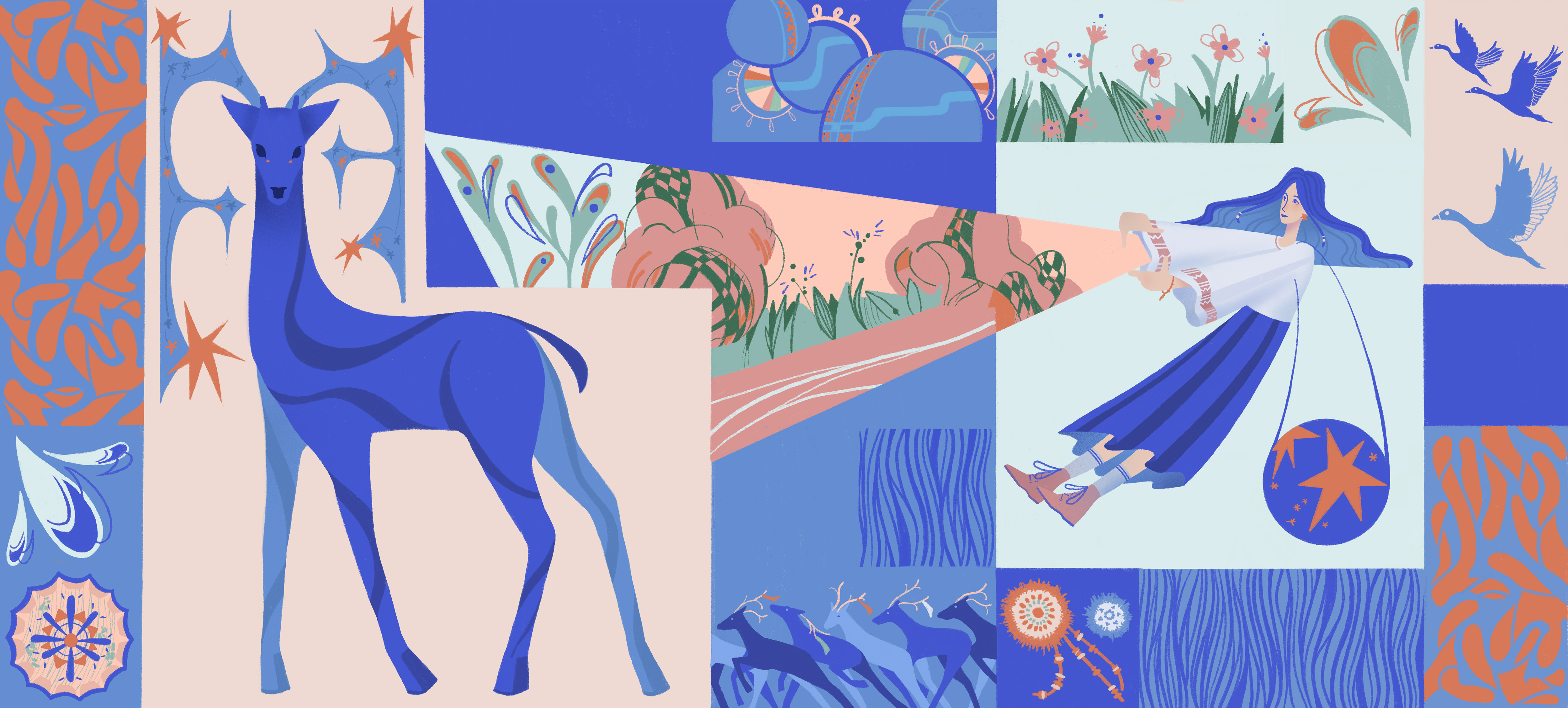 Графика черпает вдохновение из разнообразия специальностей, которым обучаются студенты колледжа, а также использует элементы местной культуры и природы. Модульность графики делает её легко адаптируемой под различные пространства