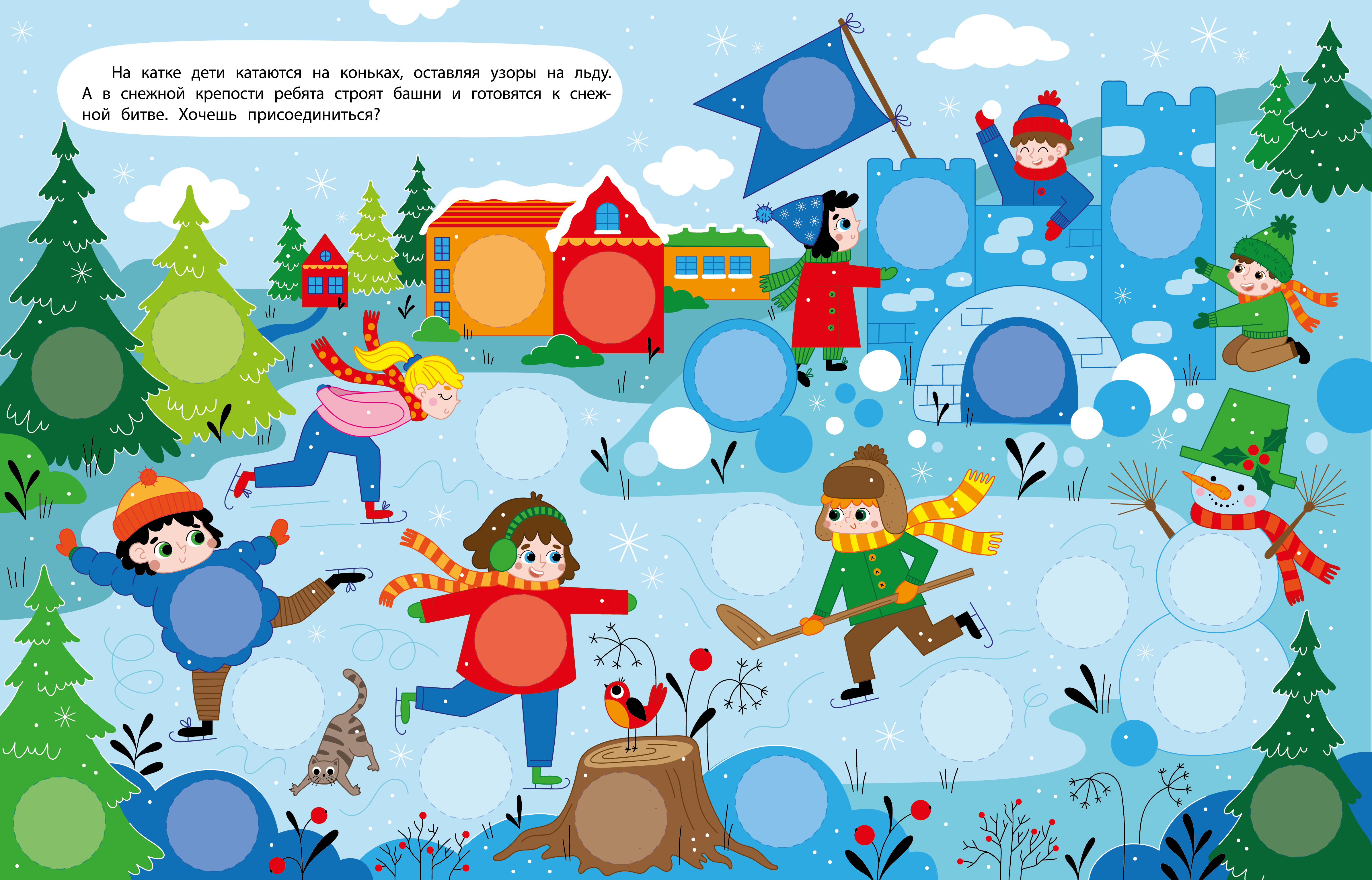 Из серии иллюстраций к книге с кружочками-наклейками.