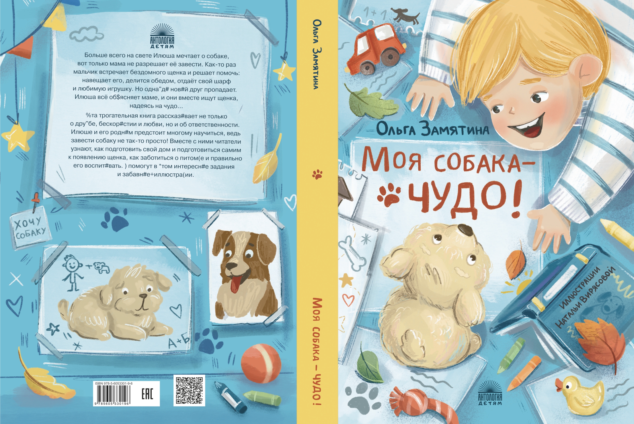 Обложка к изданной книге "Моя собака - чудо!" Ольги Замятиной, изд. Антология , 2025