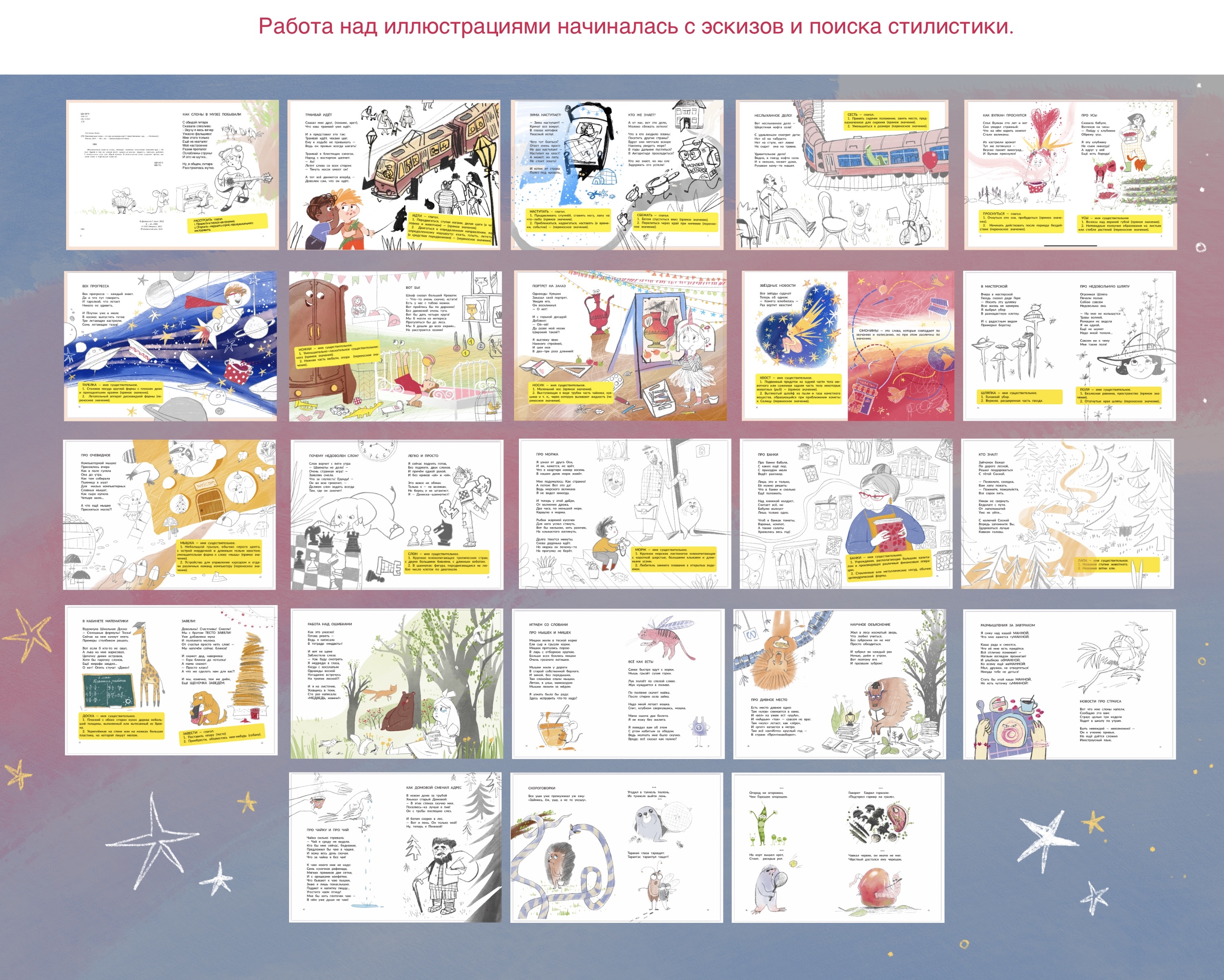 Иллюстрации из книги стихов Елены Степановой "Многозначные слова - это вам не дважды два!" 2025 г. издательства "Феникс-Премьер"
