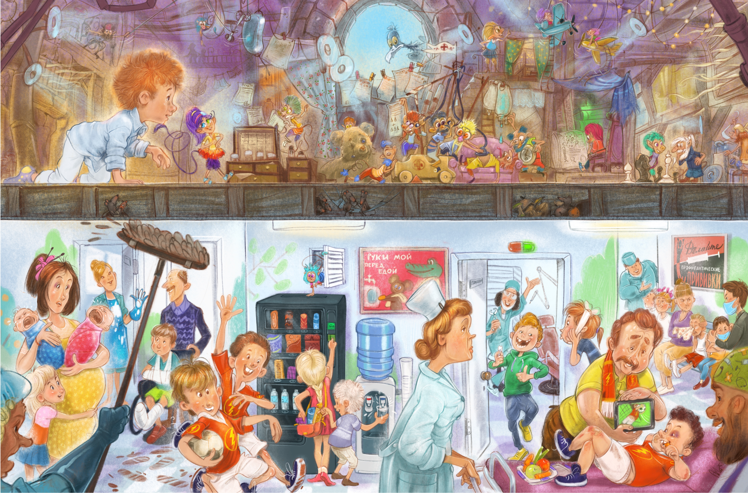 Залипательный разворот для книжки про медят. Слабо сосчитать всех персонажей?;)