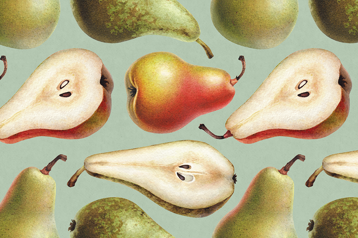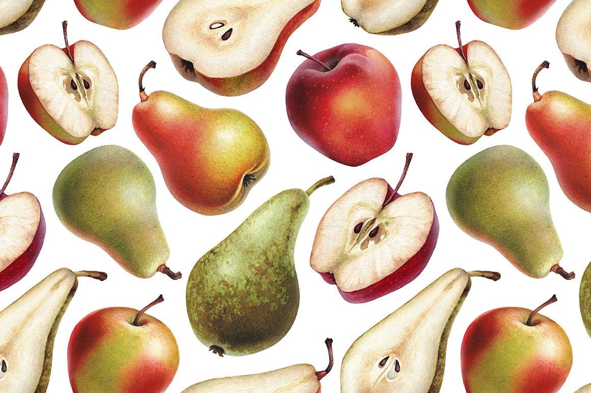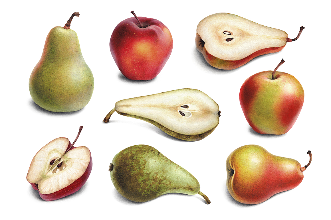 Акварельные иллюстрации груш и яблок