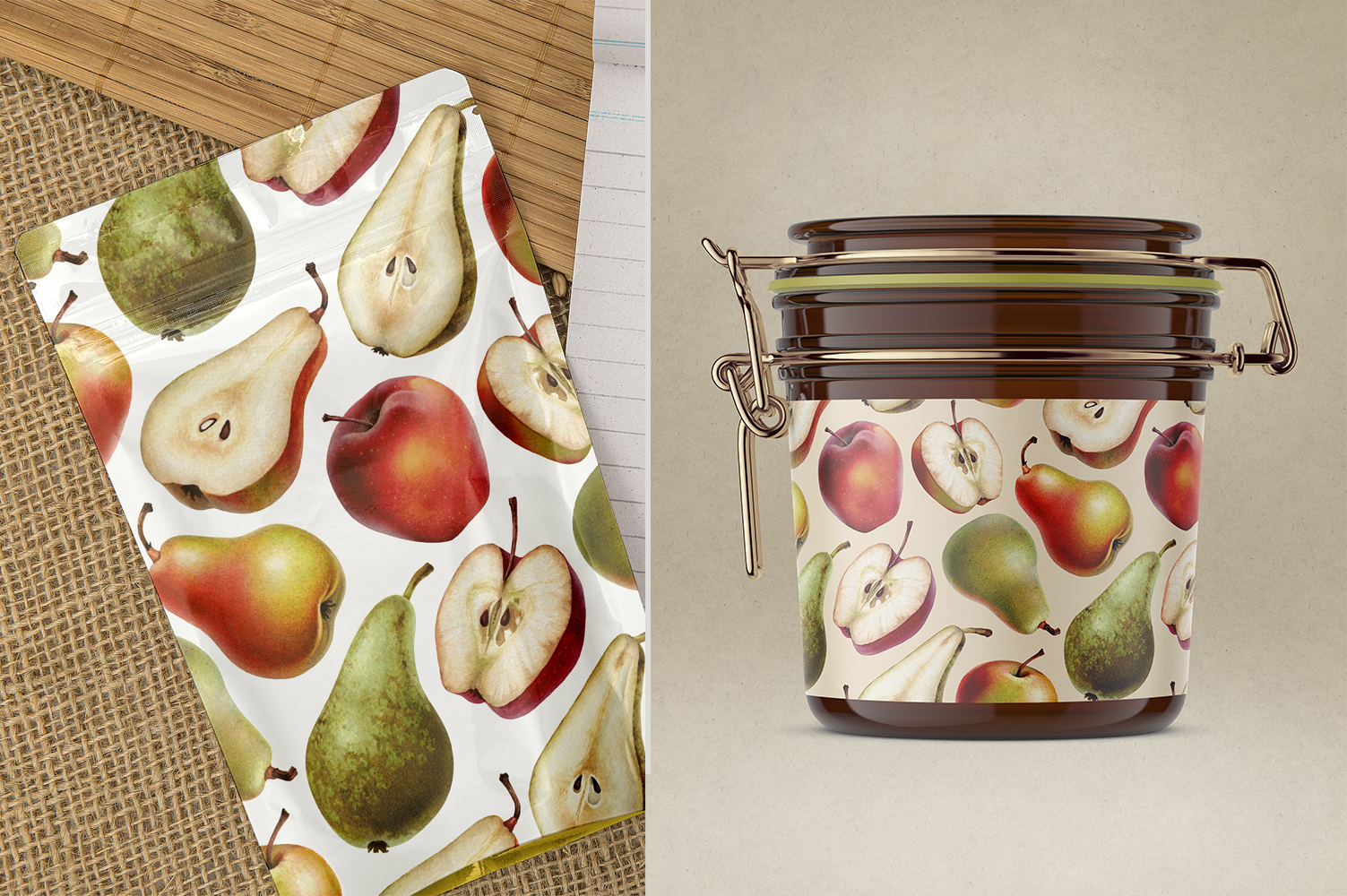 Акварельные иллюстрации груш и яблок для печати на упаковочной продукции