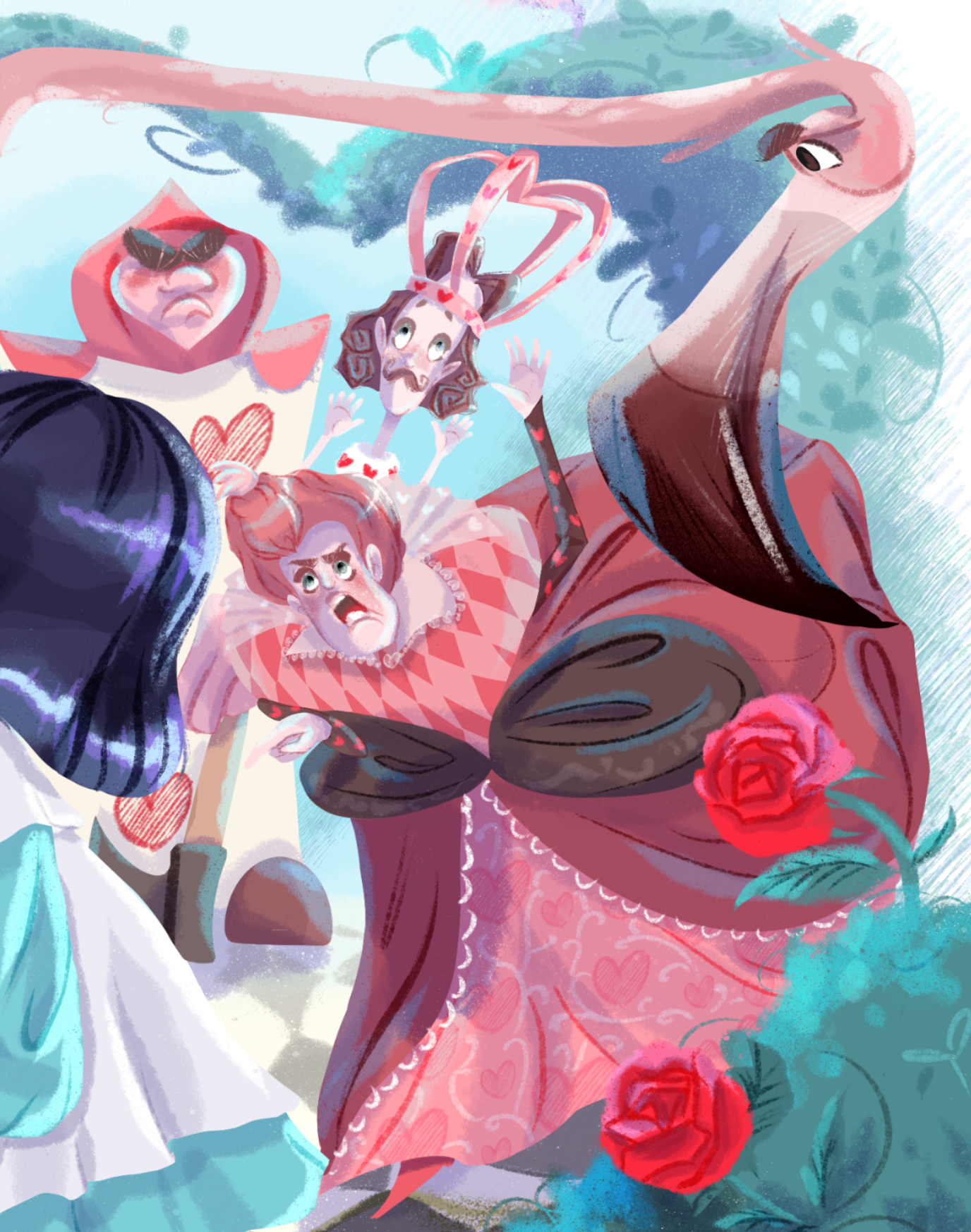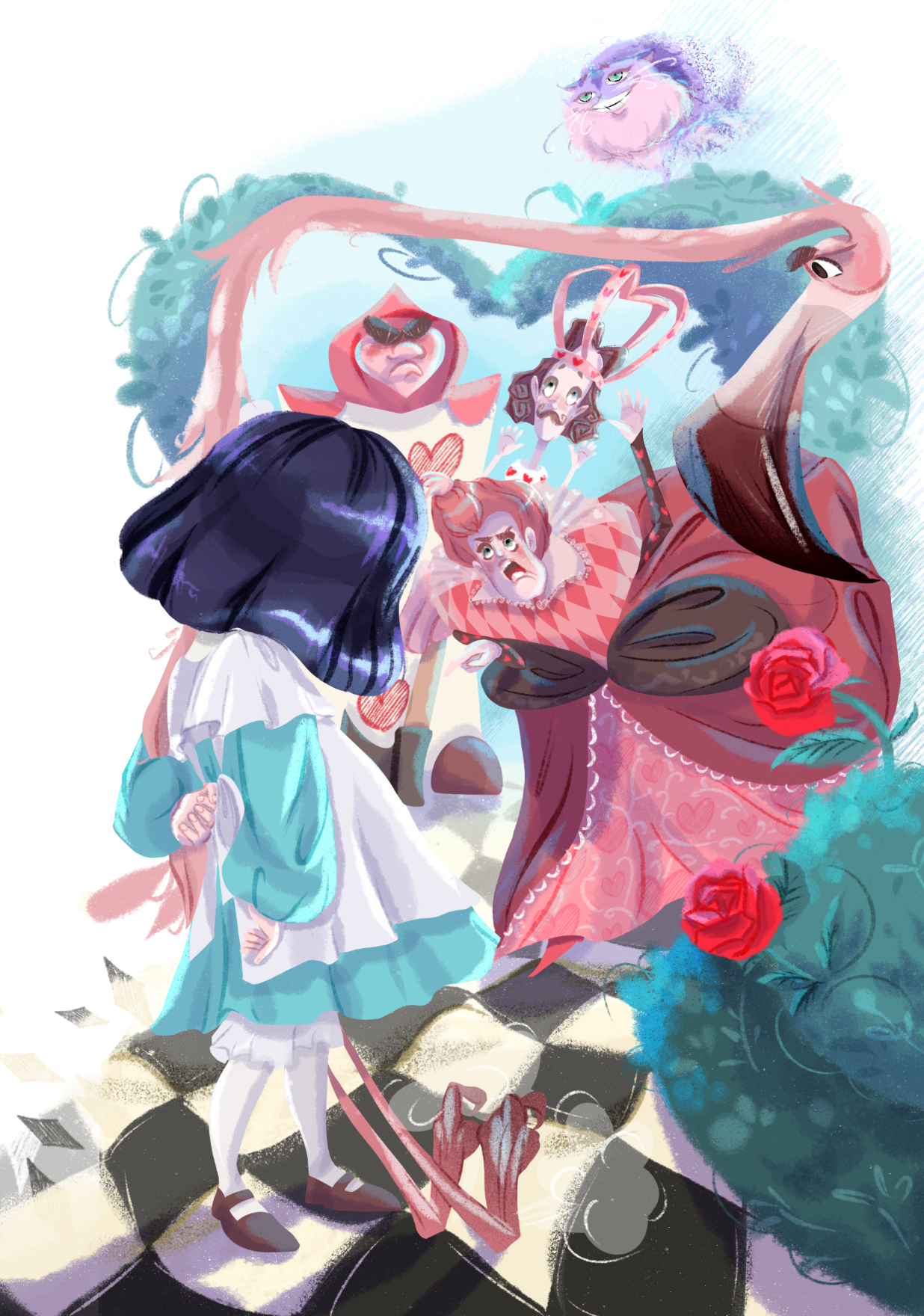 Иллюстрация к произведению Льюиса Кэрролла "Алиса в стране чудес" глава 8 "Королевский крокет"