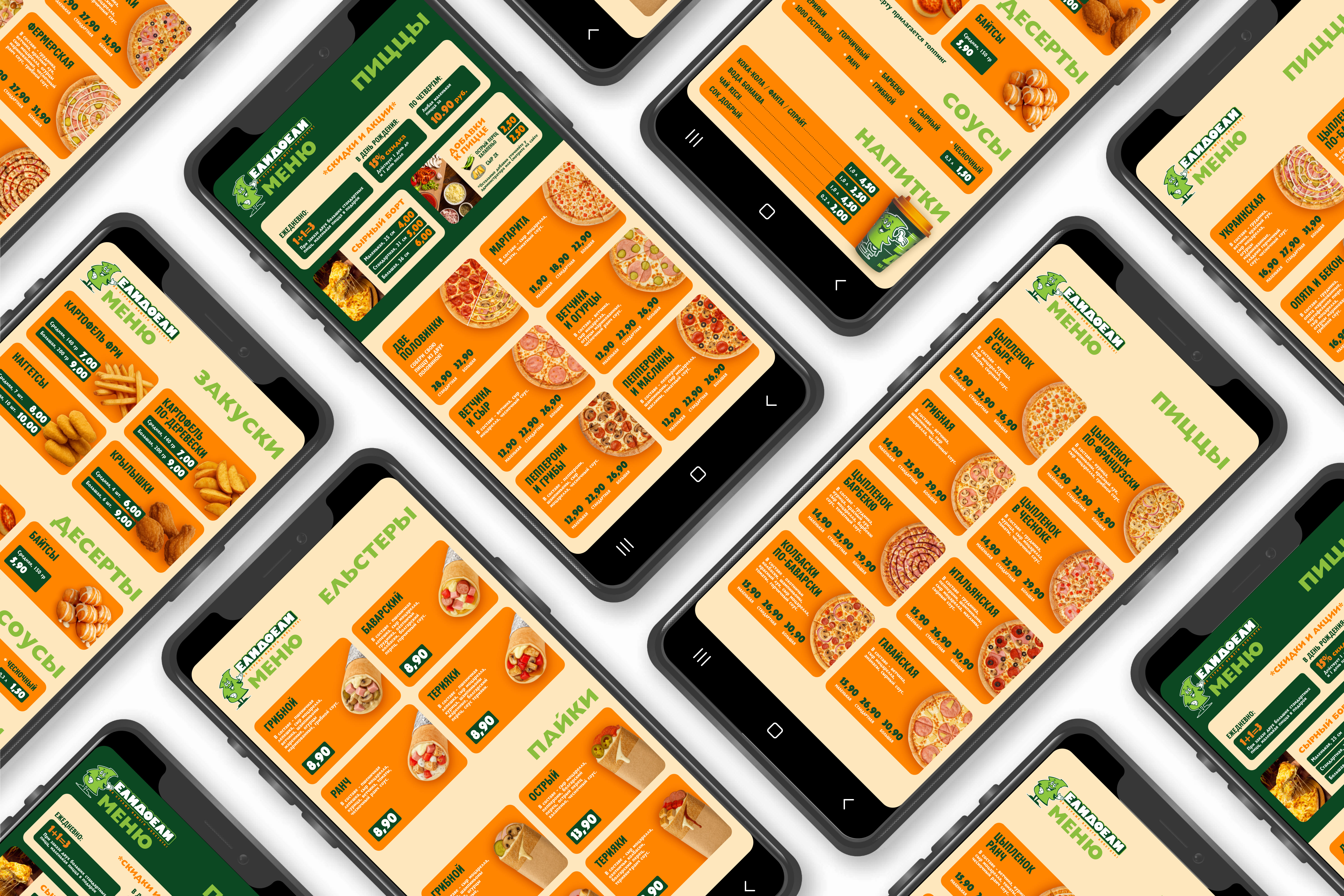 Меню для пиццерии "ЕлиДоели" (мобильный формат)