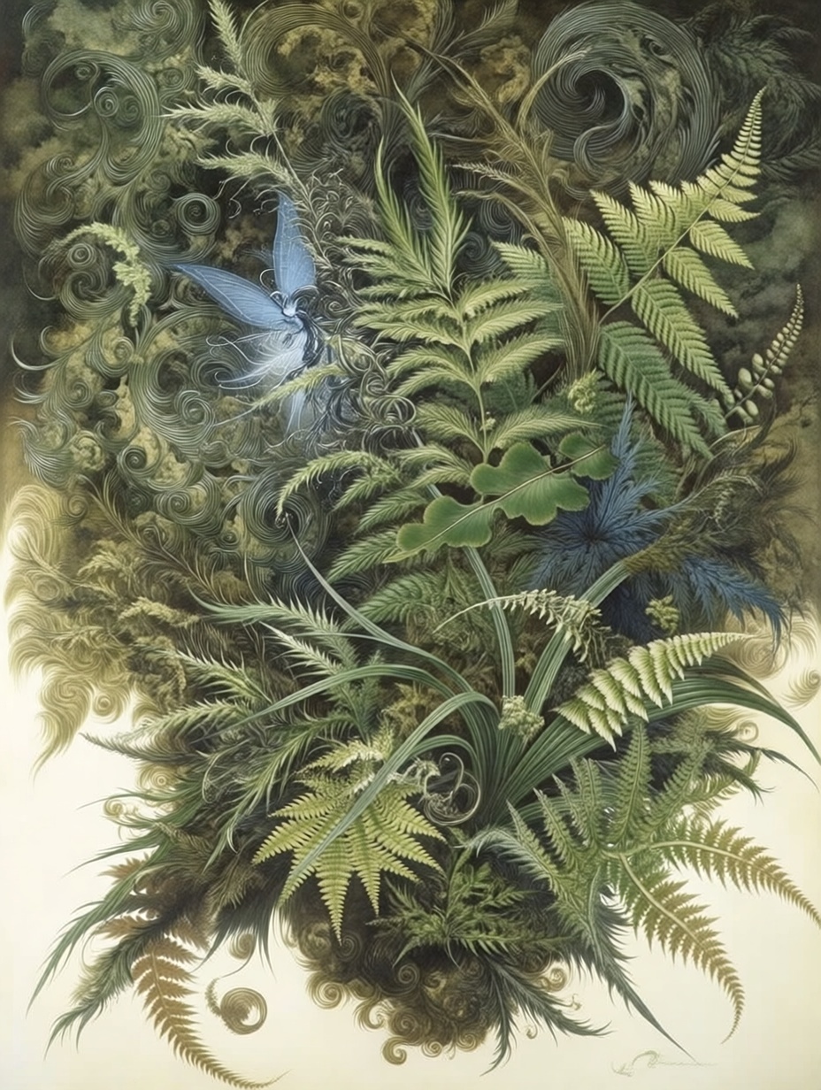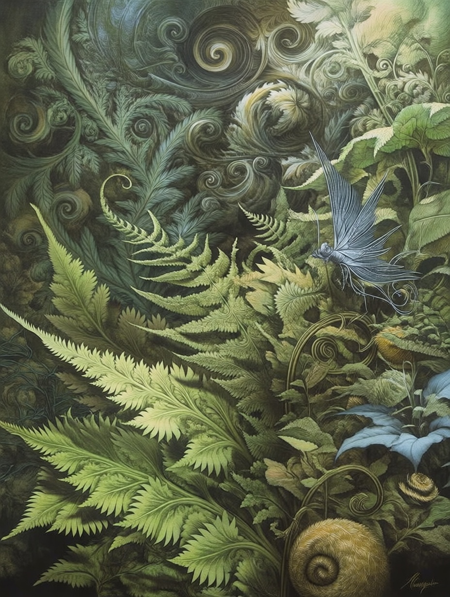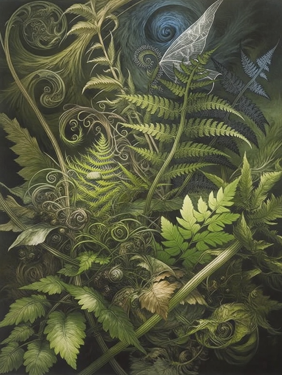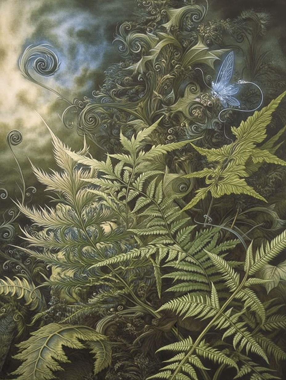 Лесные этюды с папаротниками в стиле Брайна Фрауда