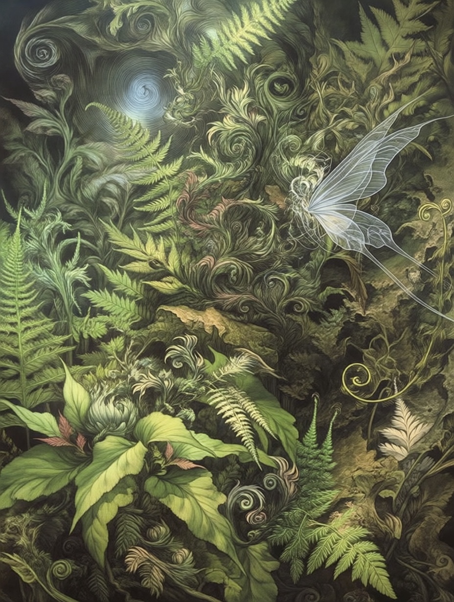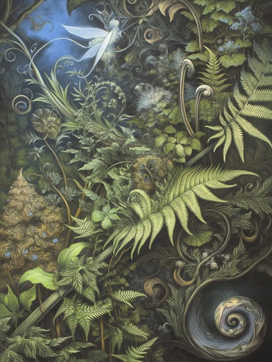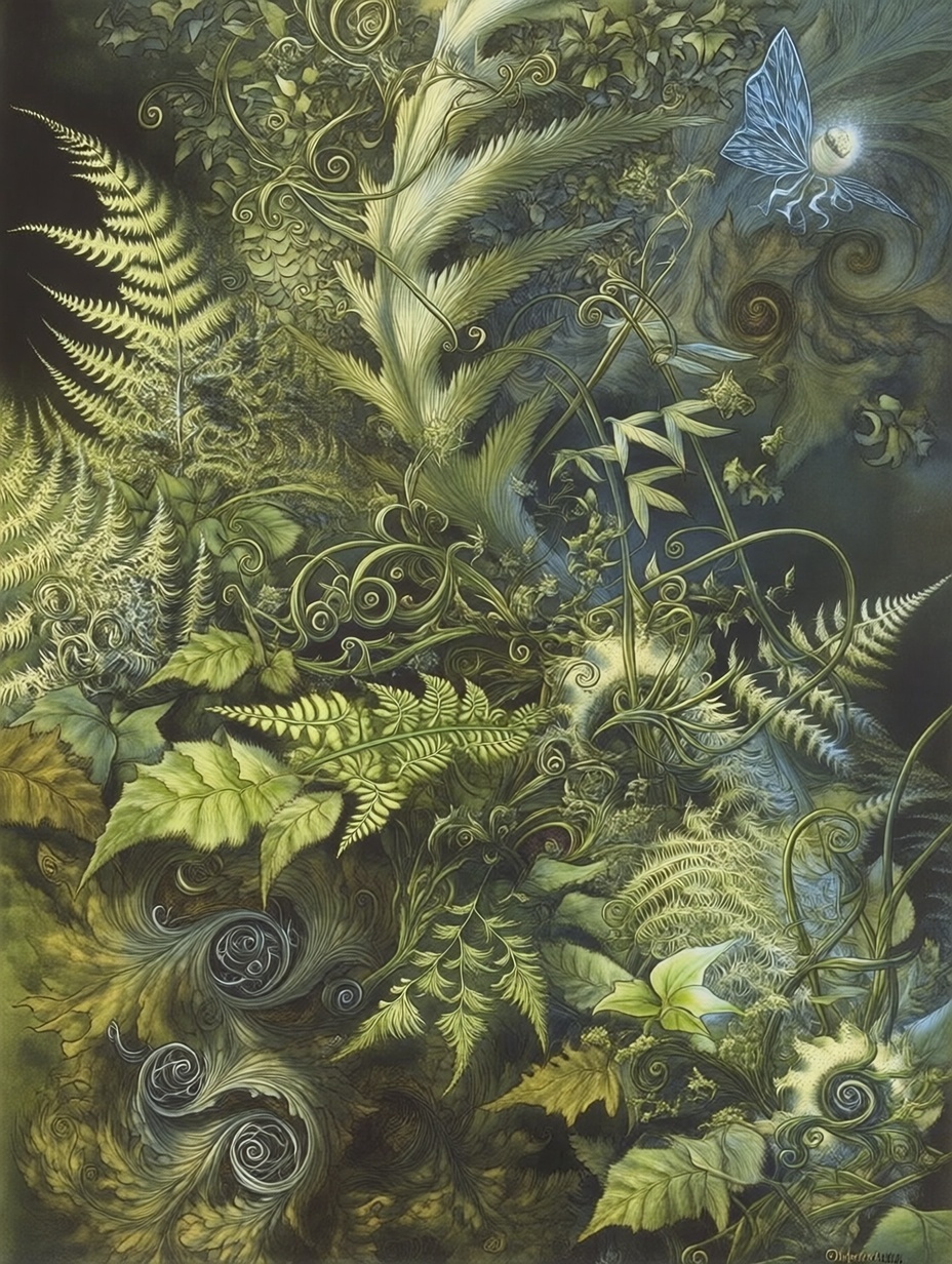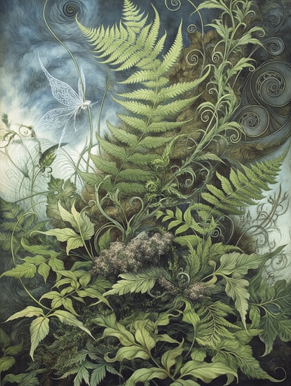 Лесные этюды с папаротниками в стиле Брайна Фрауда