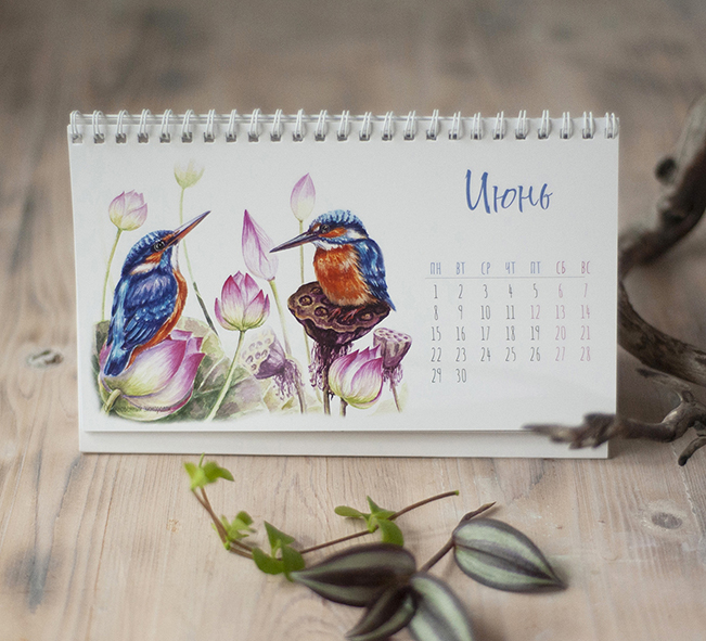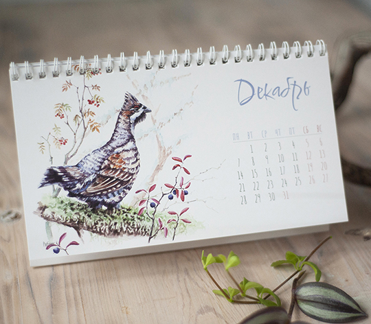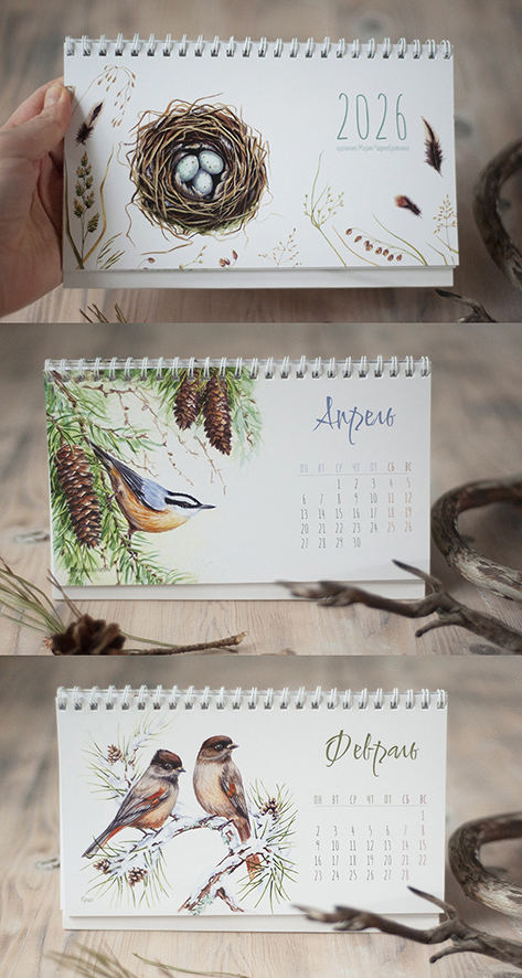 Акварельные иллюстрации и верстка для настольного календаря на 2026 год