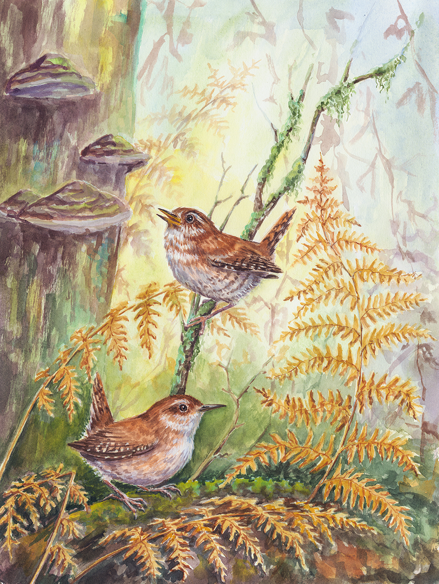 Крапивники, акварель