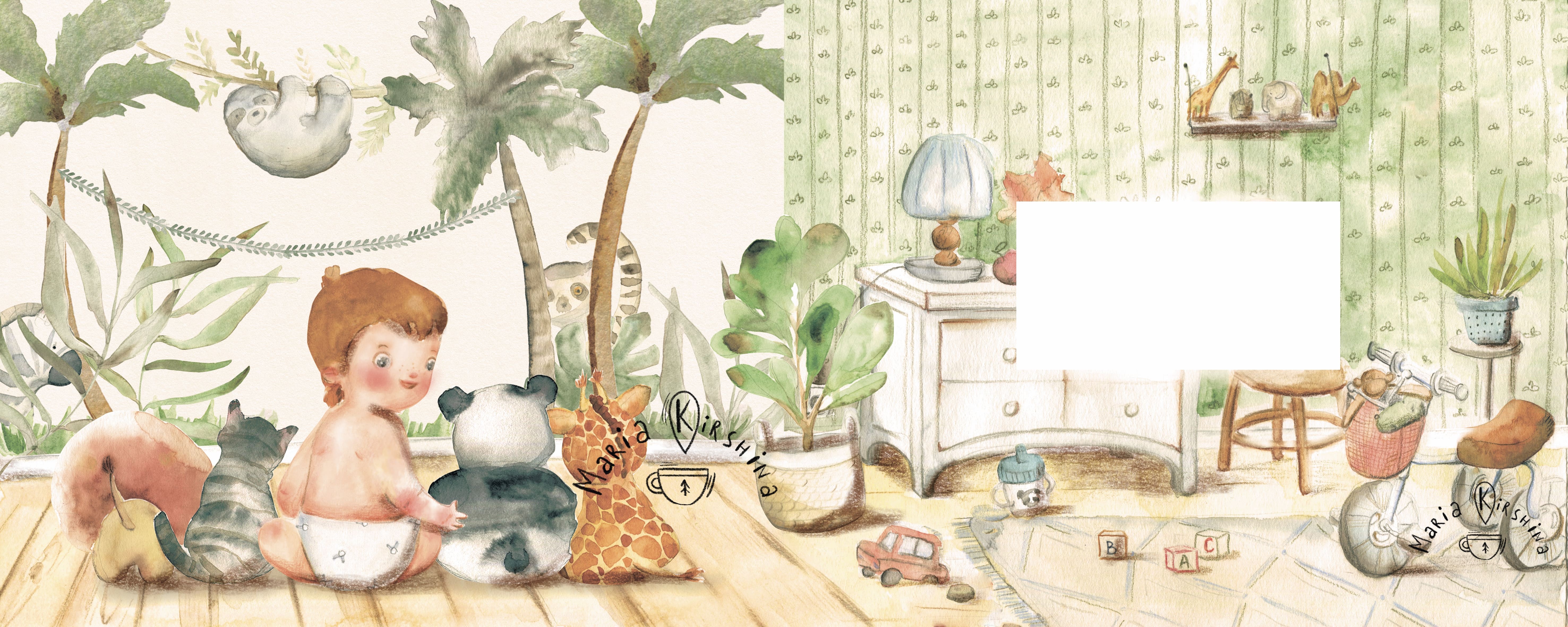 Книга-картинка для малышей выполнена акарелью и обработана в Photoshop