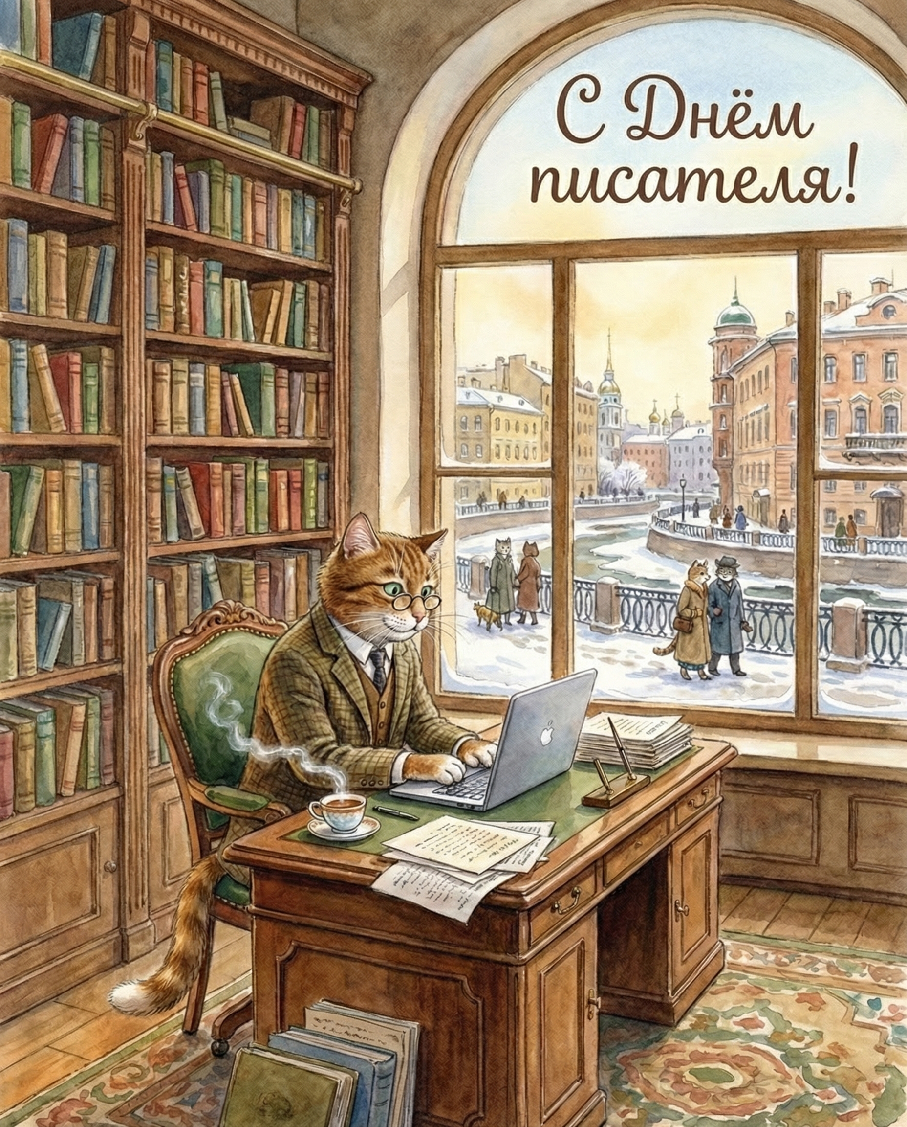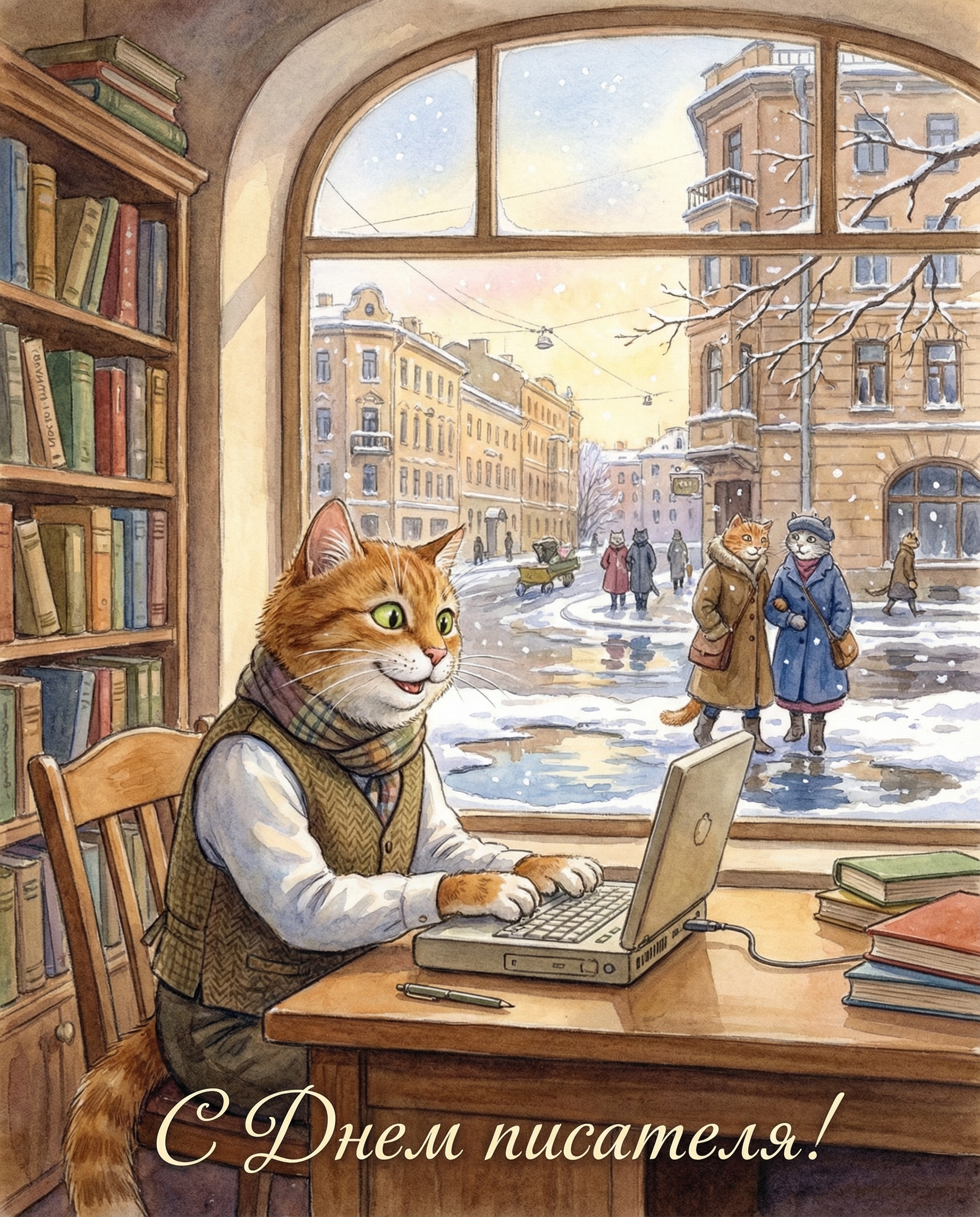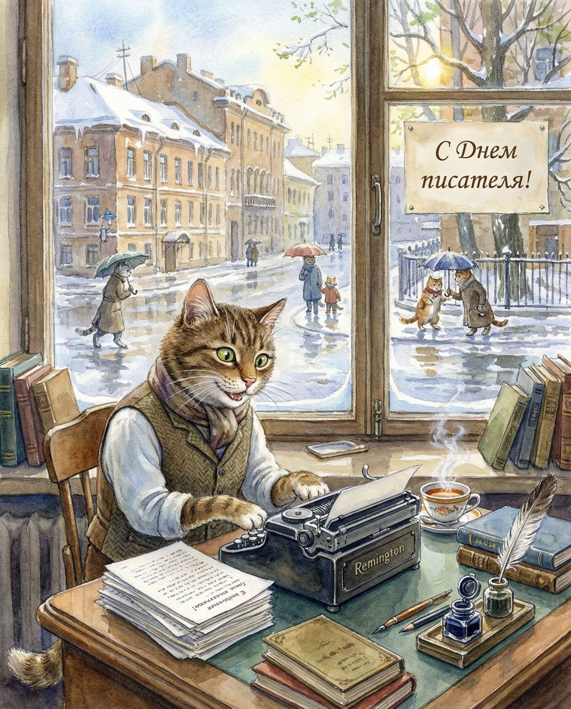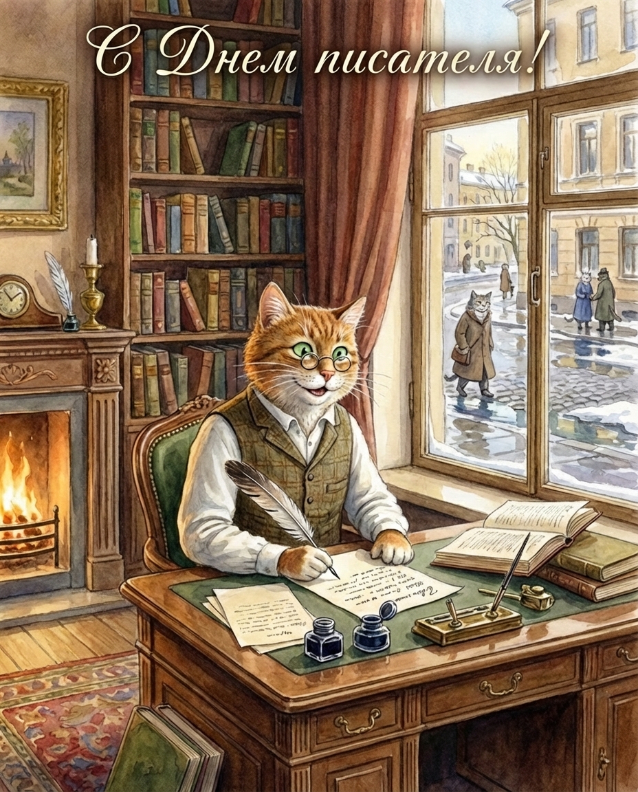 Открытки с котами ко Дню писателя
