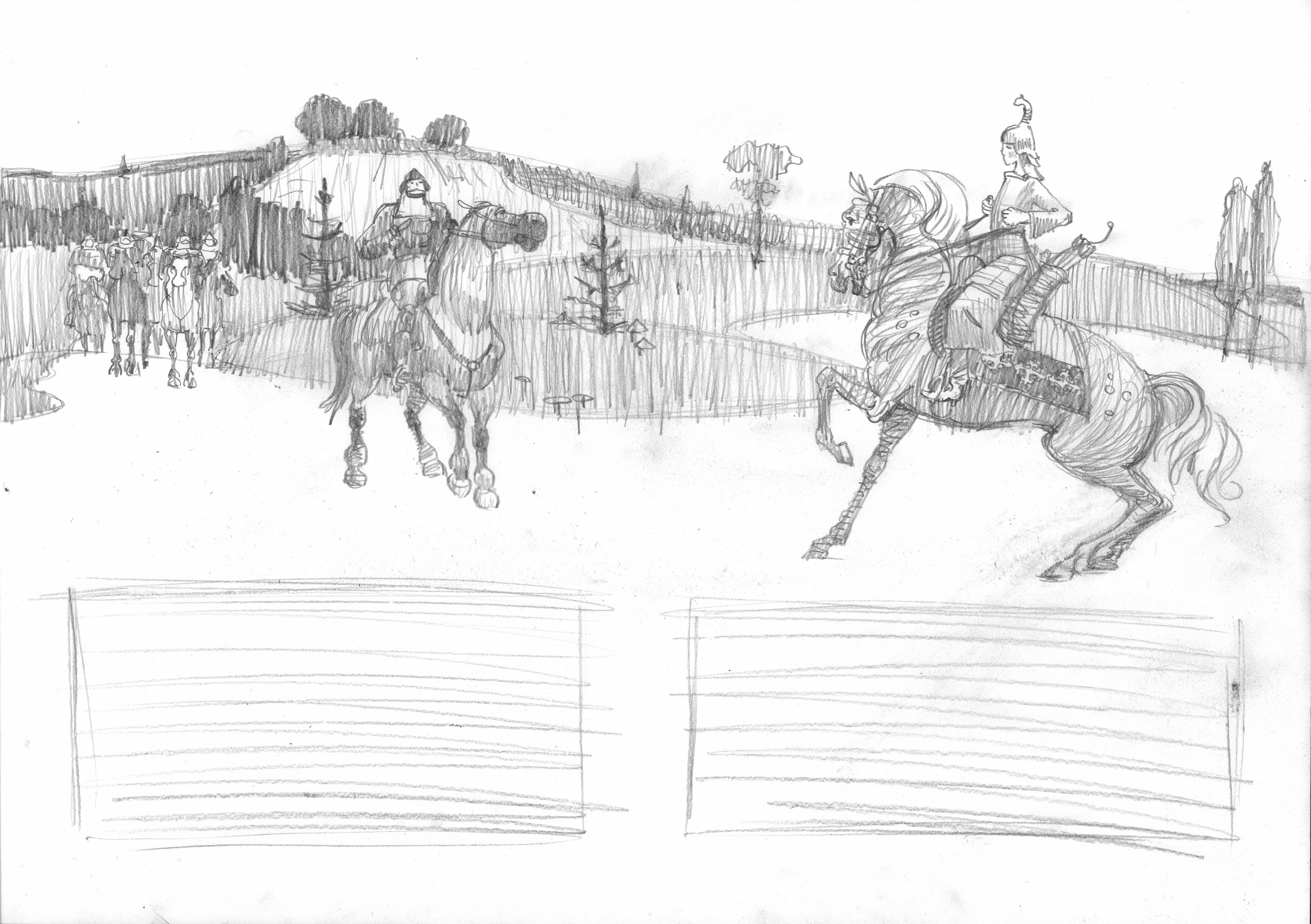 Василиса Микулична, отрезав косу и переодевшись послом из Орды, едет из Чернигова в Киев спасать мужа Ставра Годиновича, а на пути встречает дружину князя.