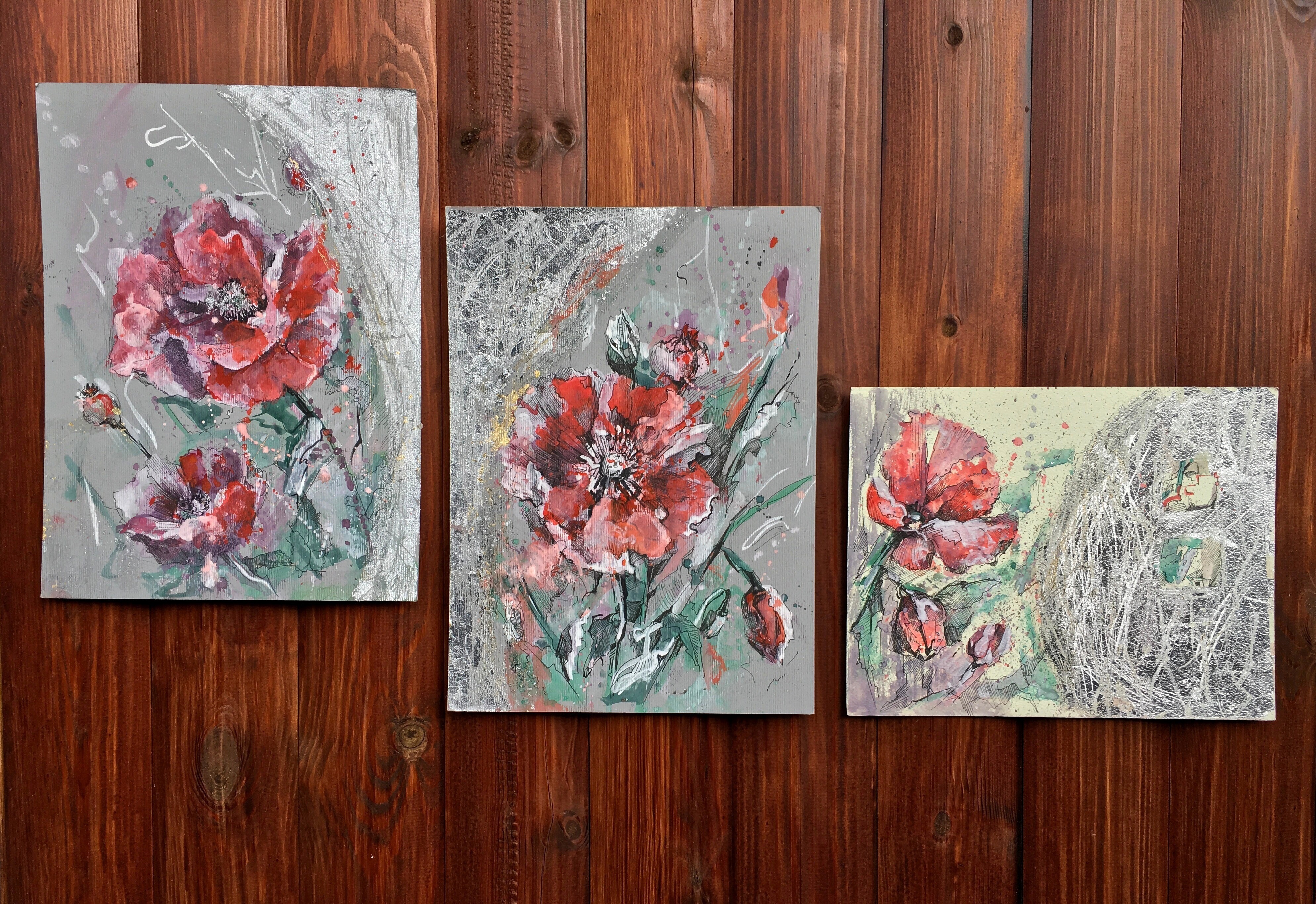 Работа выполнена из трех частей с применением потали. Смешанная техника, дизайнерский.картон, 22х30, 2018г.