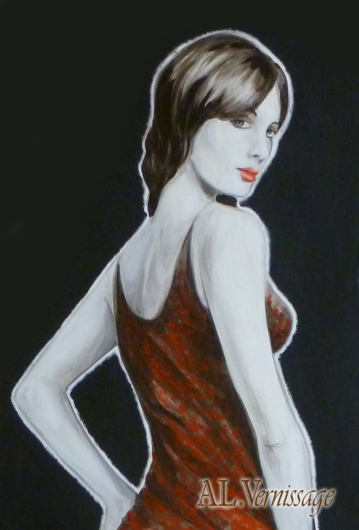 В красном
