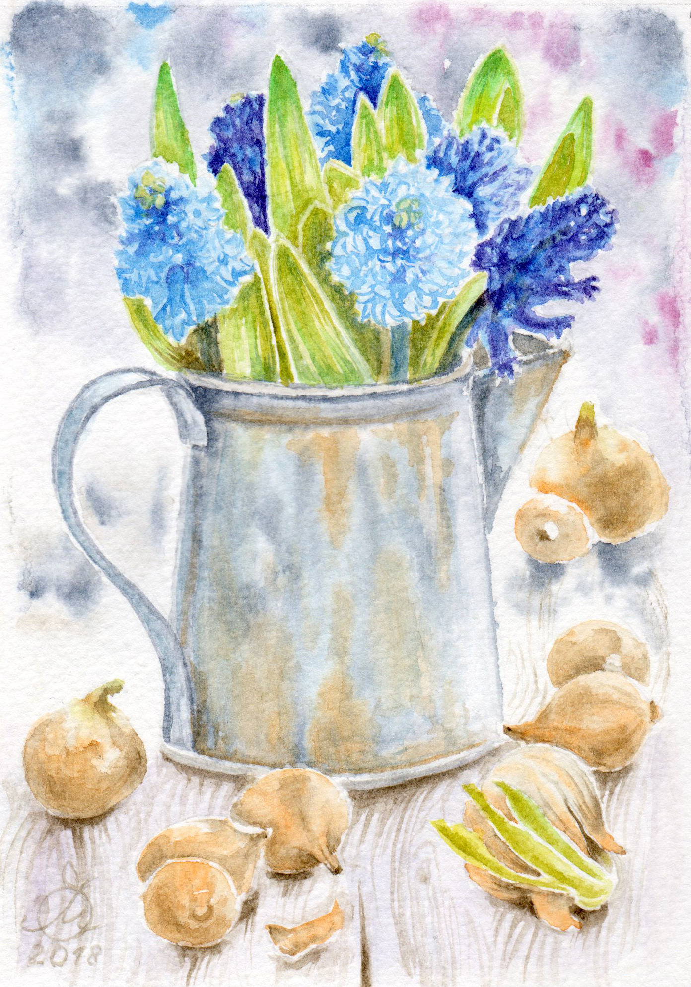 Гиацинты. Акварель, 16х24 (12х17) см, 12.03.2018г.;