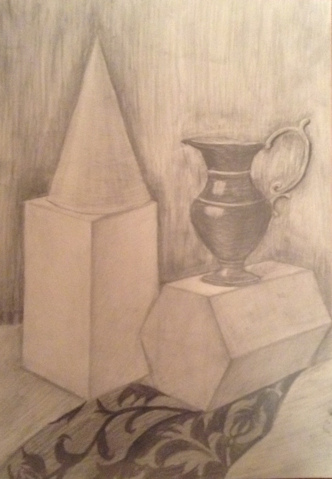 Учебный натрморт выполнен карандашом с натуры