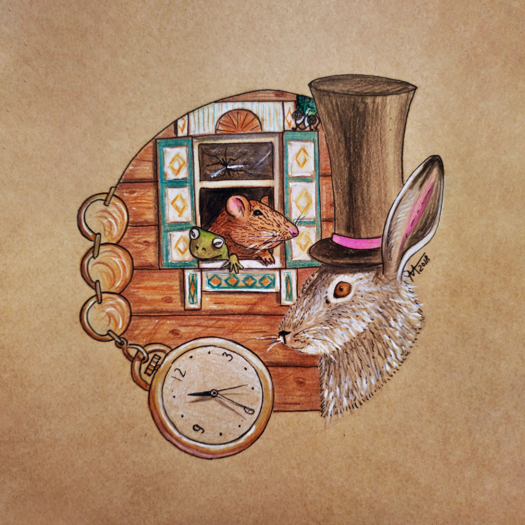 Иллюстрация выполнена цветными карандашами, линером, гелевой ручкой на крафтовой бумаге.