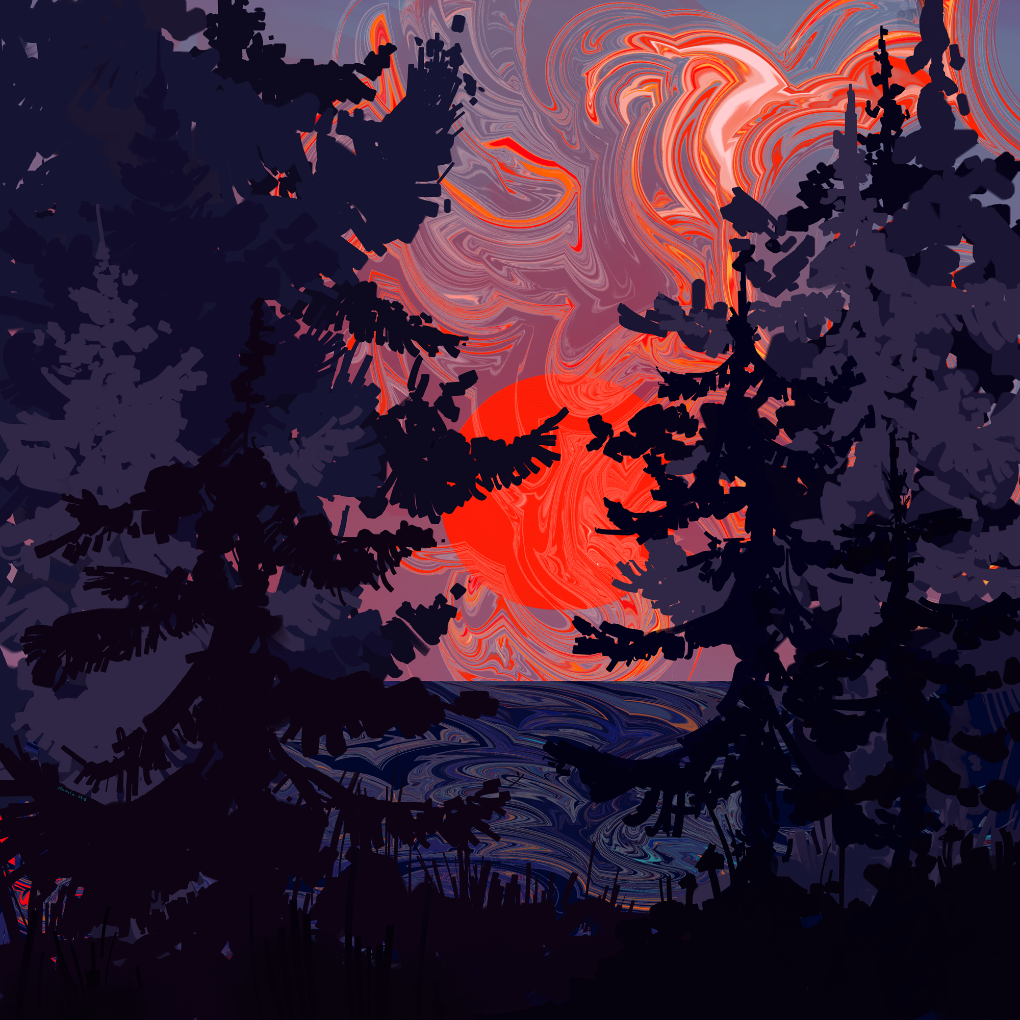 Закат в лесу