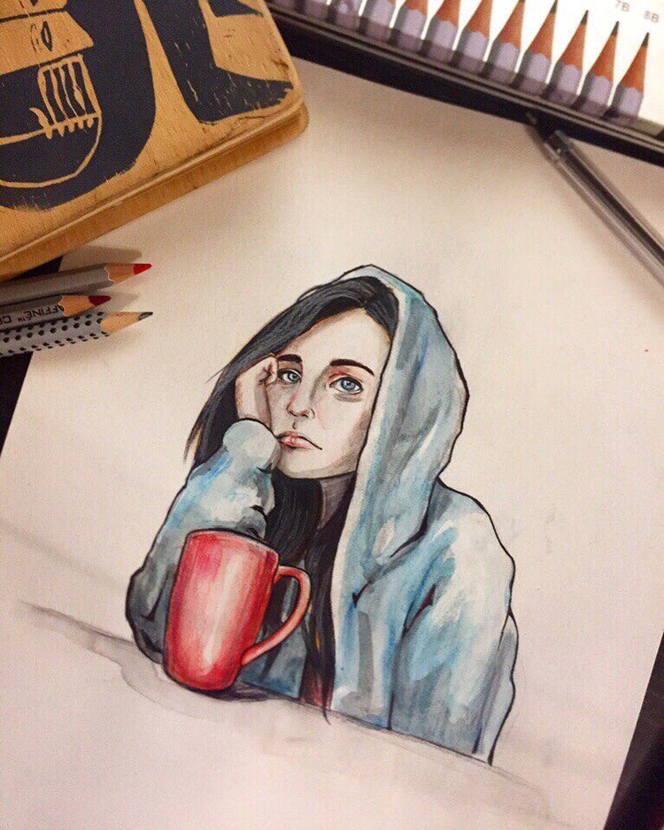 Персонаж. Девушка с кофе. Ожидание.