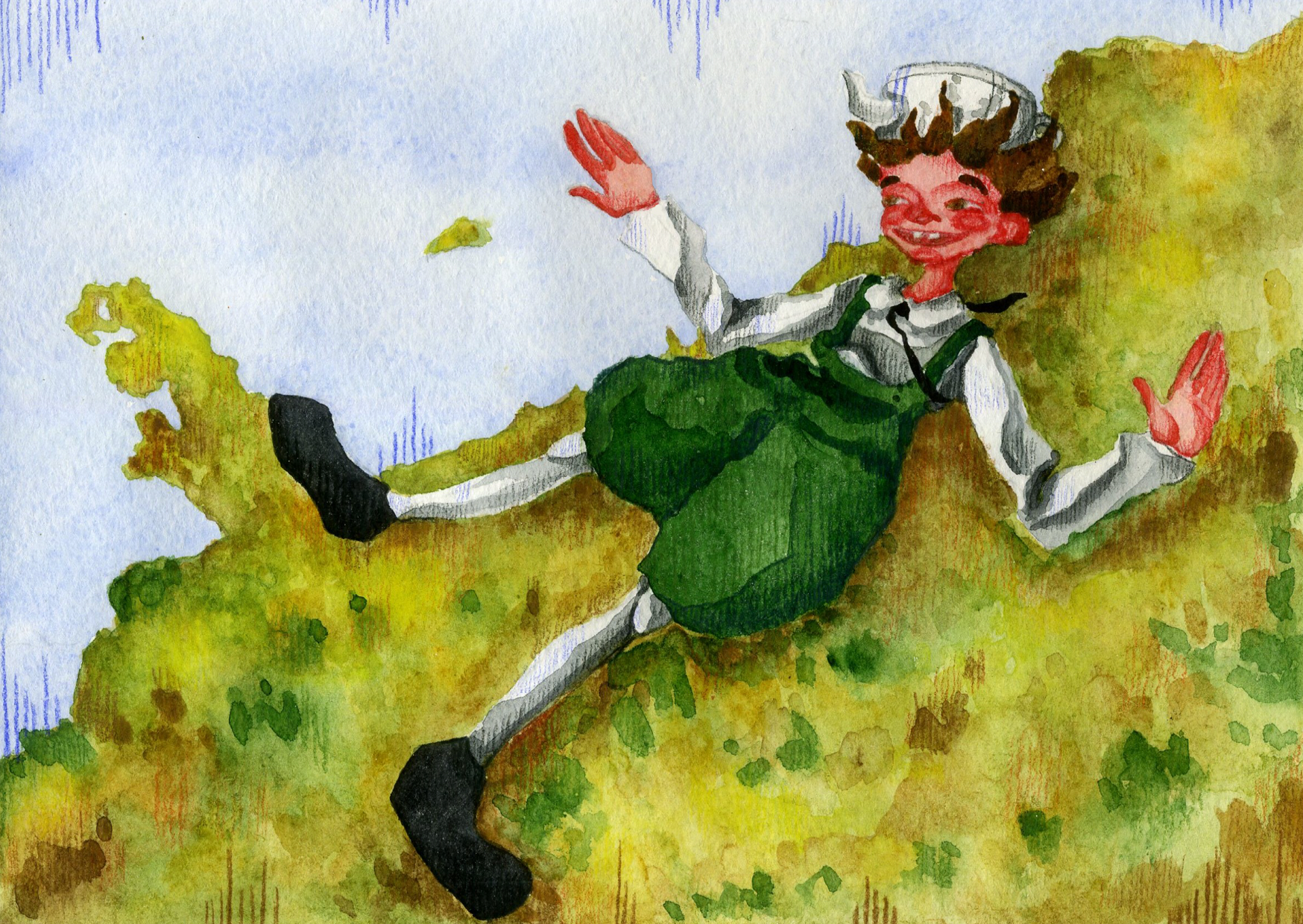 Персонаж мультфильма "По ту сторону изгороди"- Грегори, прыгает в куче листьев.