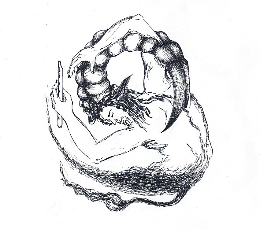 Быстрый фантазийный рисунок гелевой ручкой.