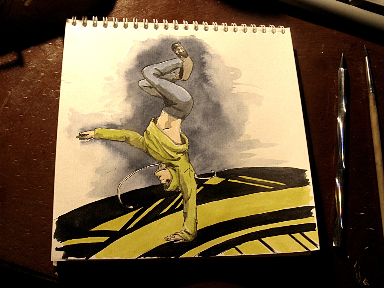 Рисунок акварелью и гелевой ручкой на акварельной бумаге. С фото. Стоп кадр.