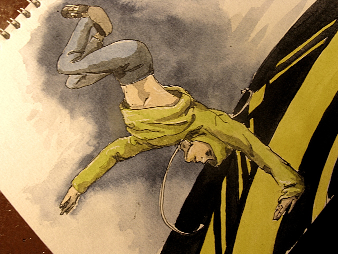 Рисунок акварелью и гелевой ручкой на акварельной бумаге. С фото. Стоп кадр.