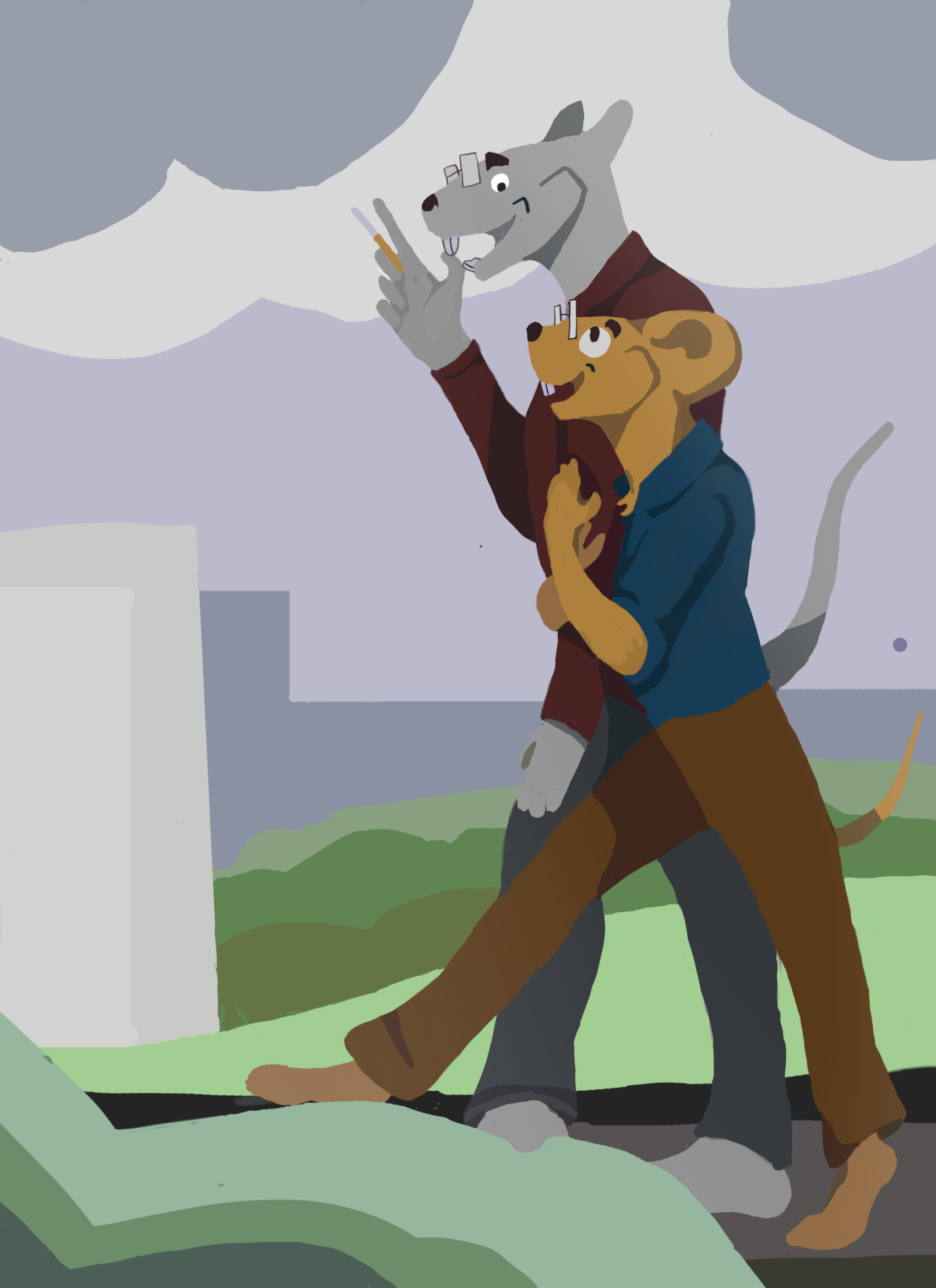 Два героя - Крыс и Мышенька увлеченно болтают о чем-то легком и забавном.