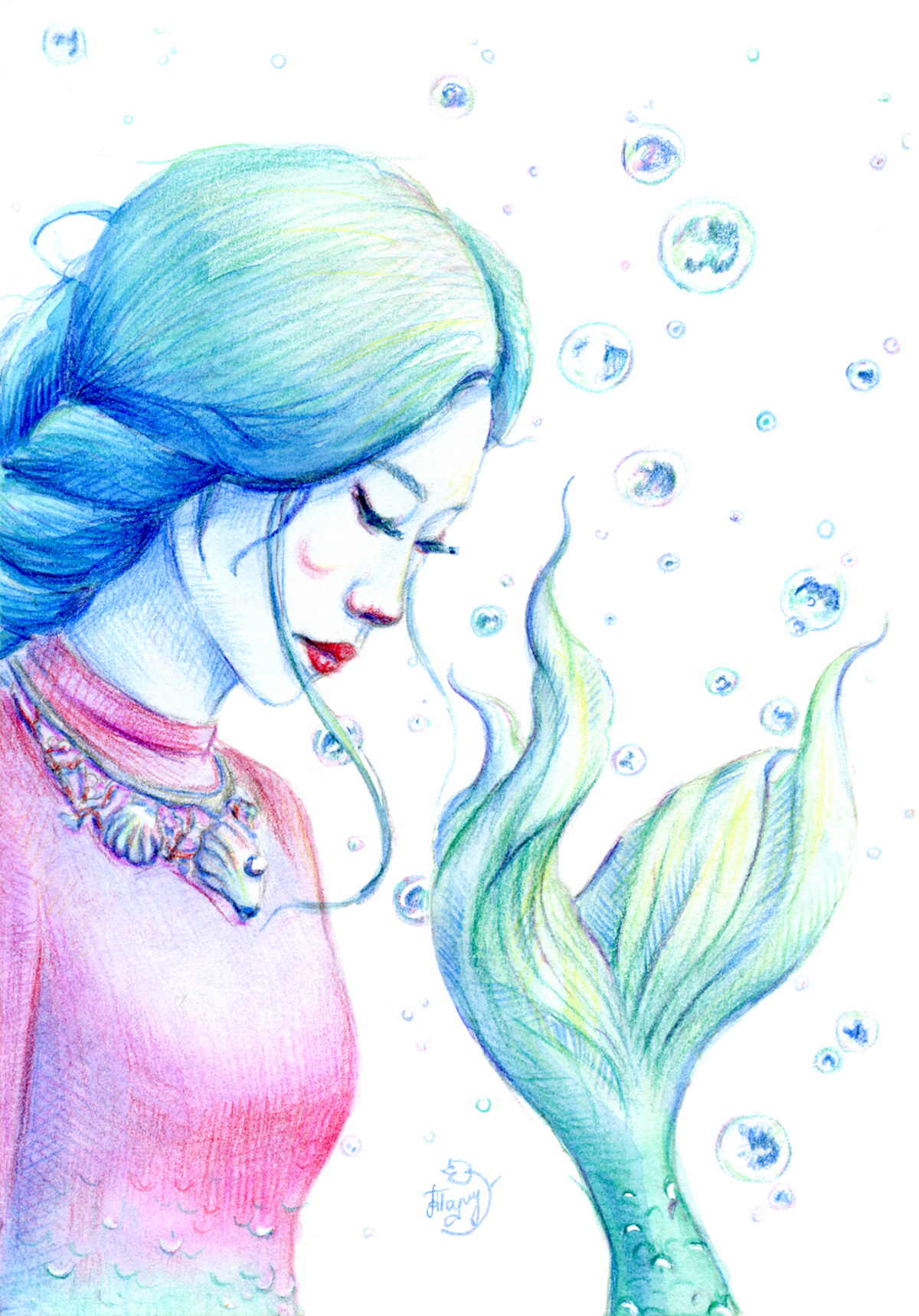 Иллюстрация выполнена цветными карандашами на бумаге.