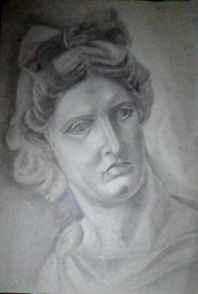 Графический портрет гипсовой скульптуры Аполлона.