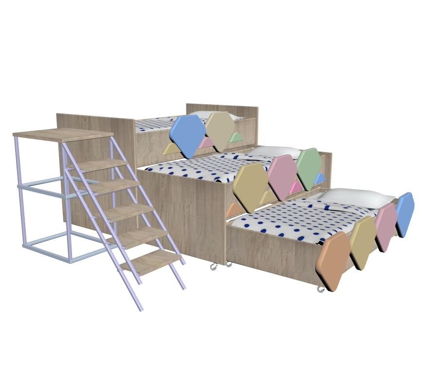 выдвижная кровать трех ярусная для спальной комнаты в детском саду