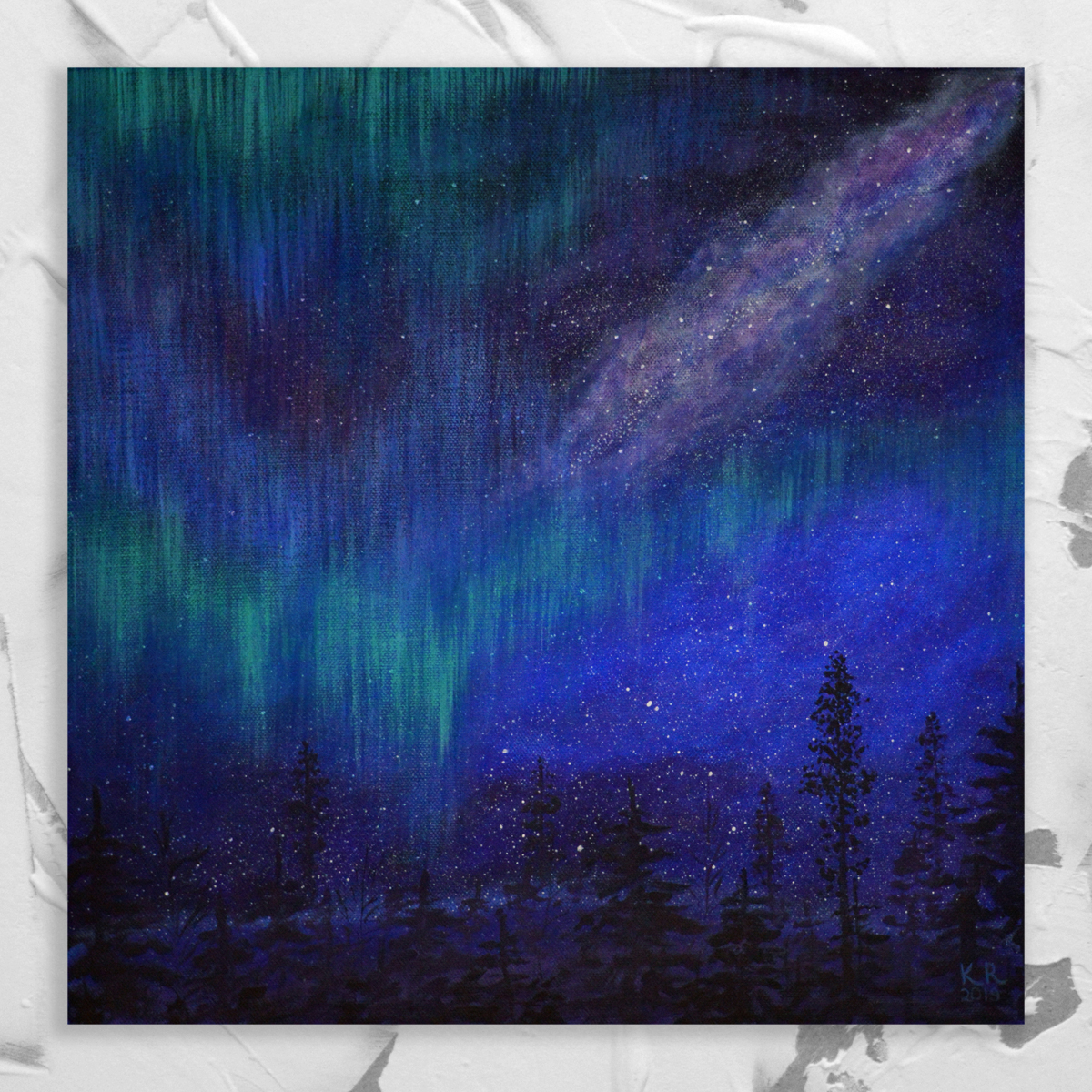 Картина "Северное сияние", холст (100% хлопок), Акриловые краски, размер 40×40 см.