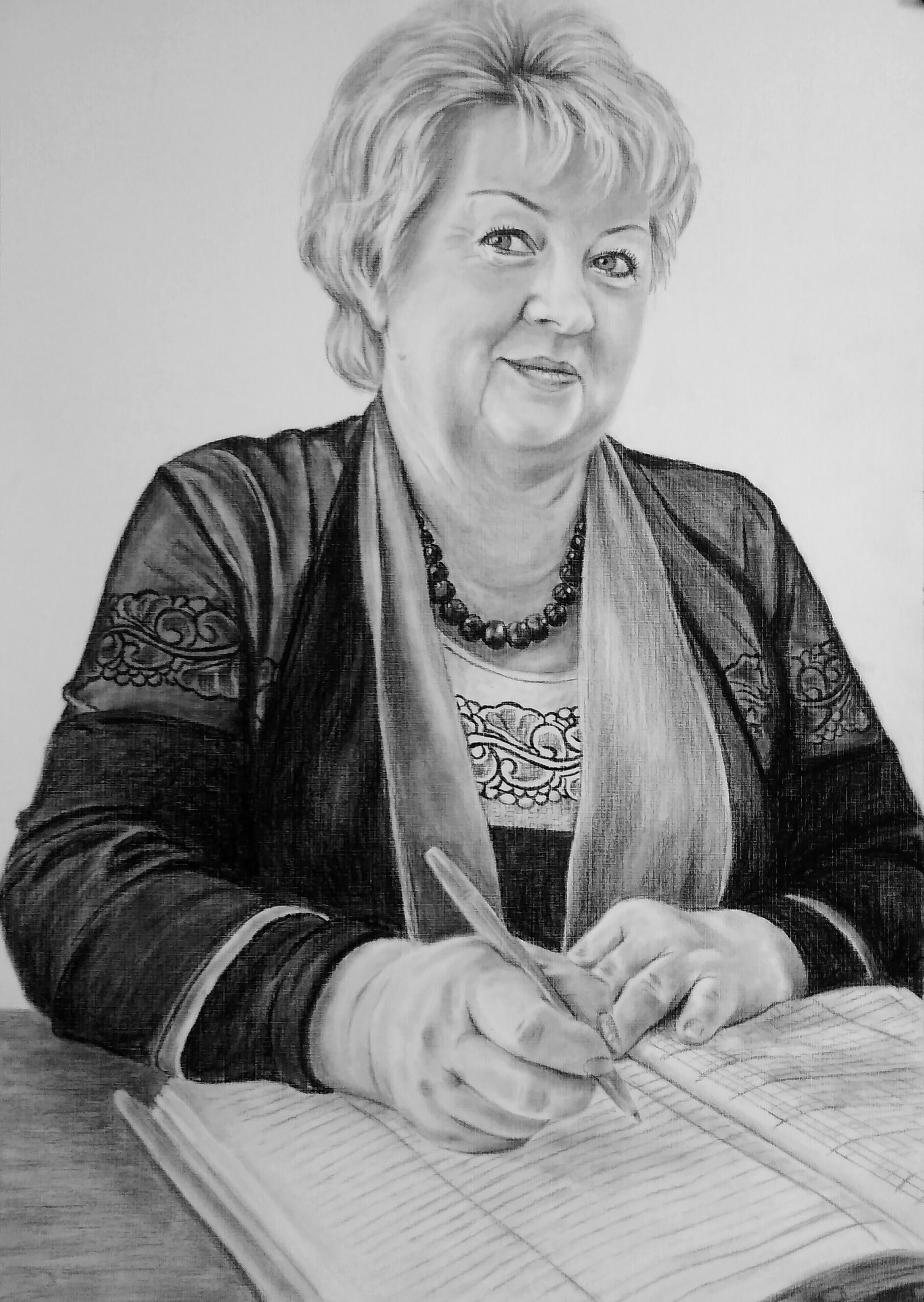 Портрет женщины нарисован углем на А3 формате