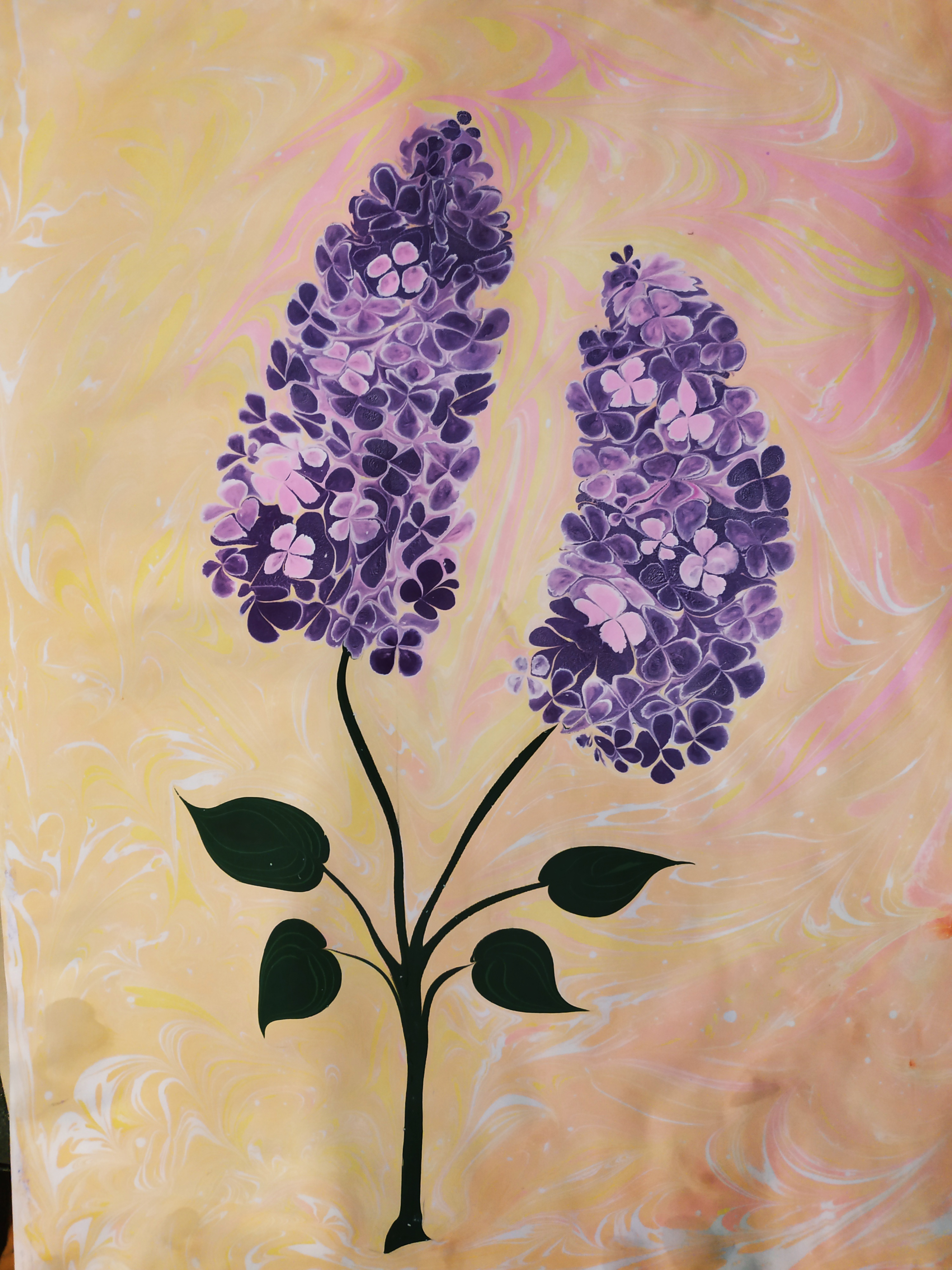 Эта сирень нарисована на воде, затем рисунок переведен на бумагу.