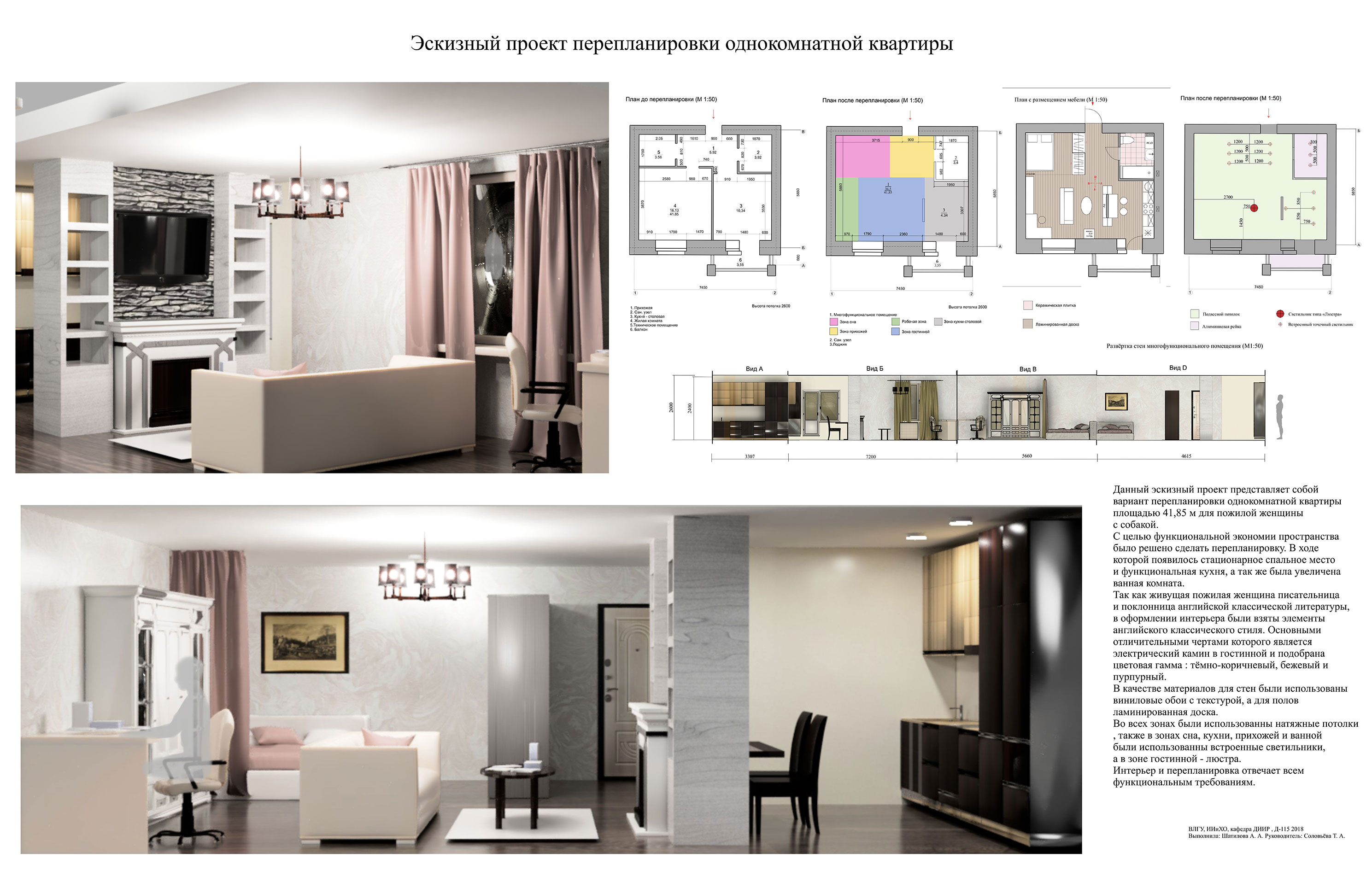 Эскизный проект перепланировки однокомнатной квартиры
