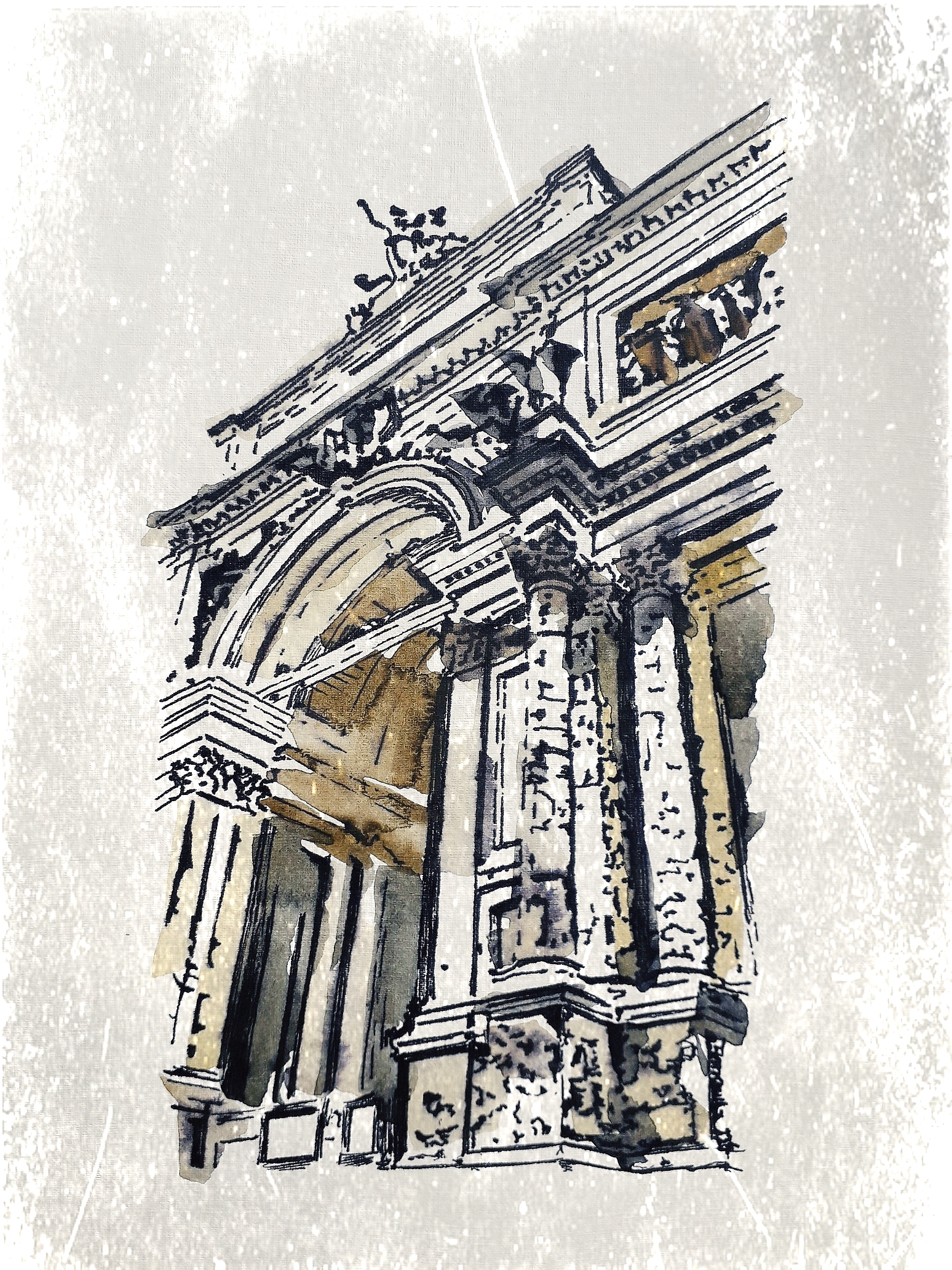 Иллюстрация написана в графическом стиле линером и акварелью, на акварельной бумаге А4 цвета айвори