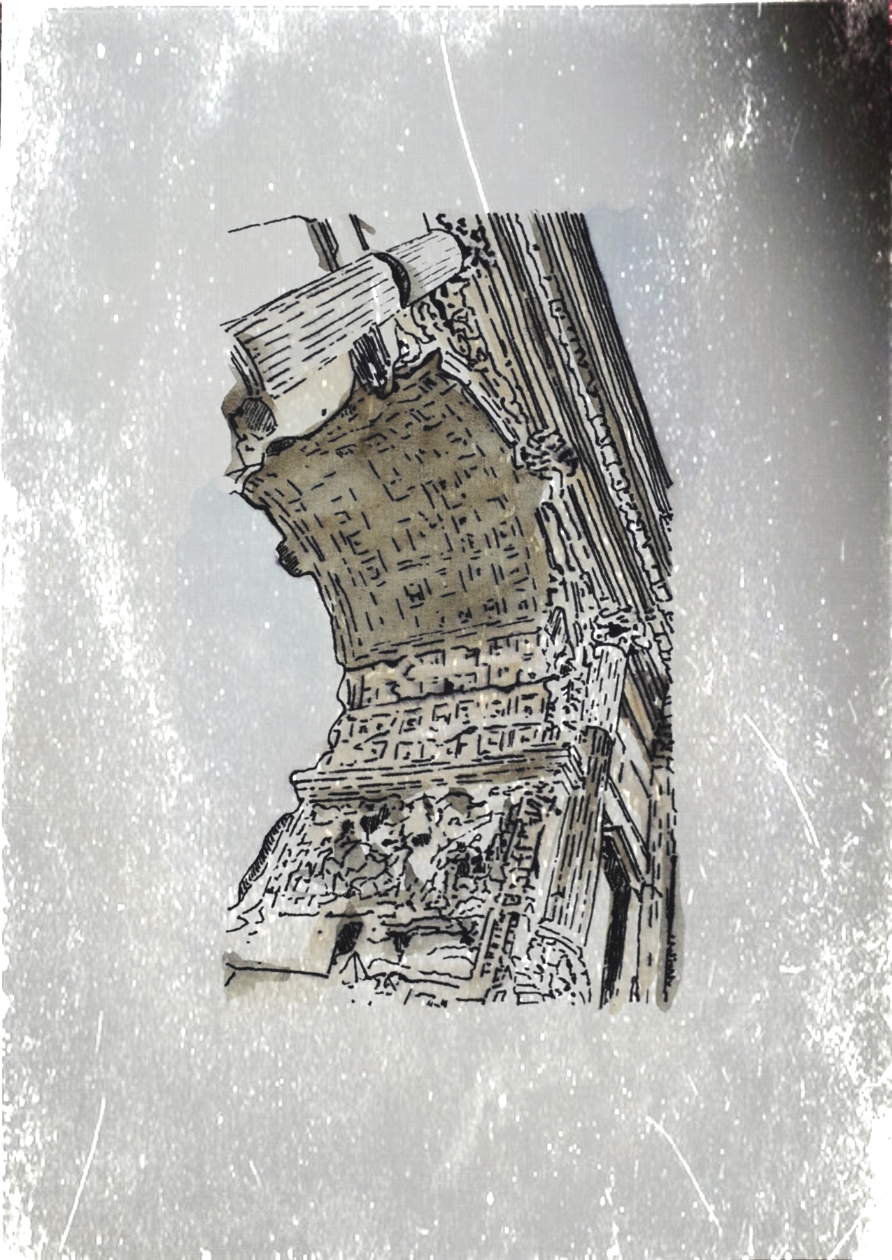 Иллюстрация написана в графическом стиле линером и акварелью, на акварельной бумагн А4 цвета айвори