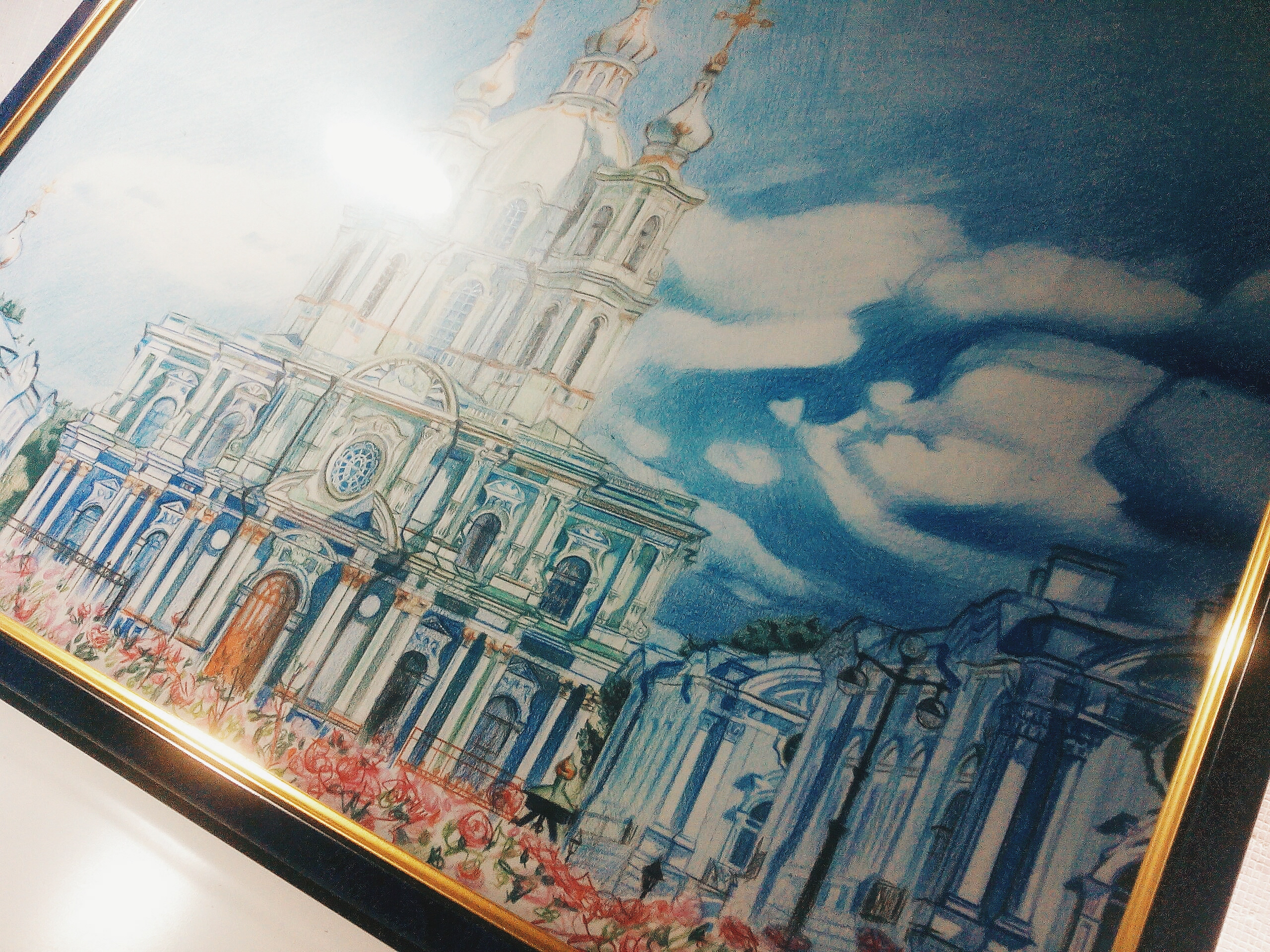 Рисунок выполнен вручную цветными карандашами и акварелью