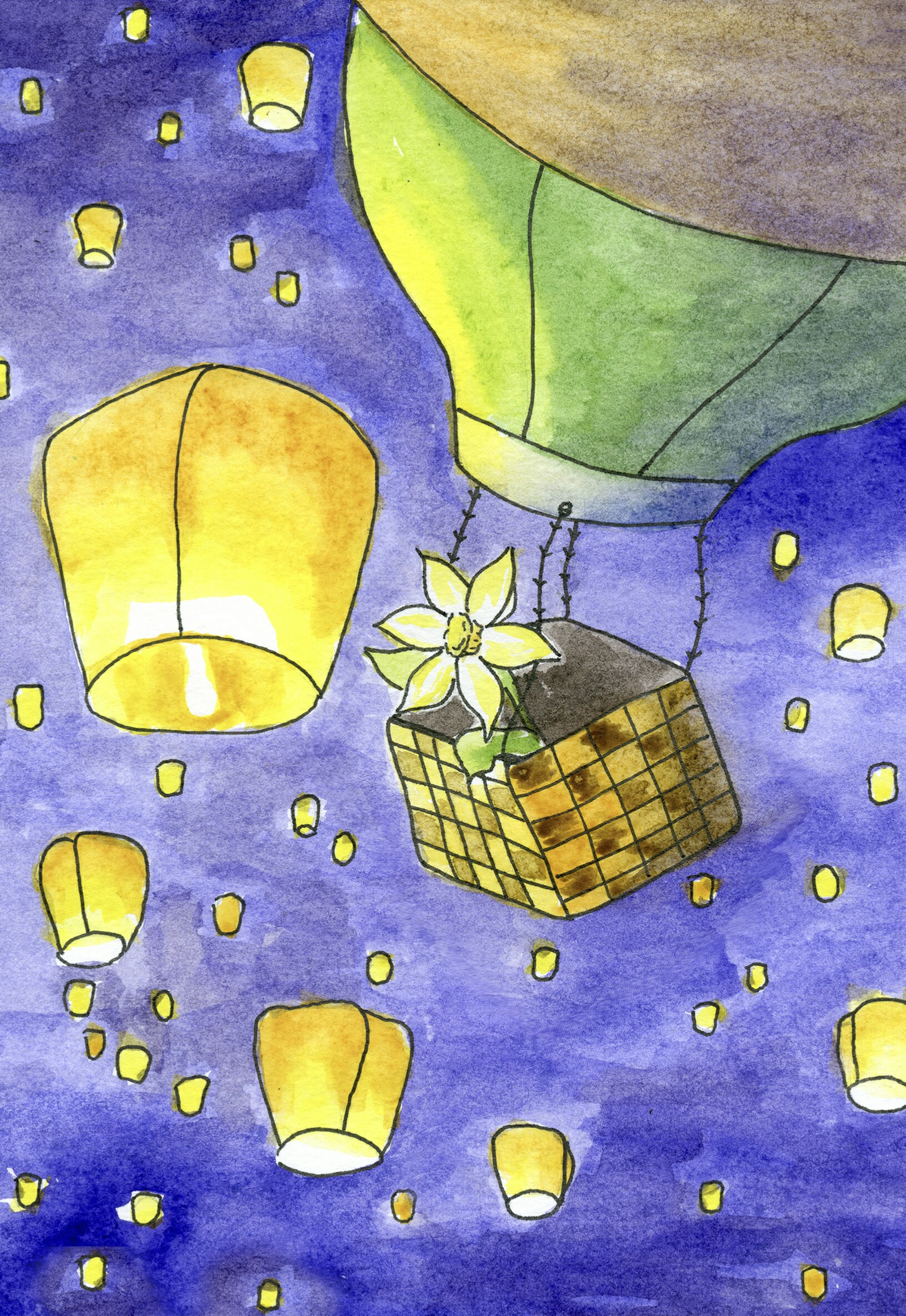 Нарцисс путешествует на воздушном шаре среди небесных фонариков