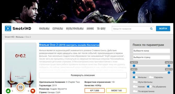 На сервисе можно прочесть к фильму описание, и также познакомится с трейлером. На странице также имеется оценка конкретной кинокартины. После сего получится сделать вывод, нужно ли просматривать конкретный кинофильм.