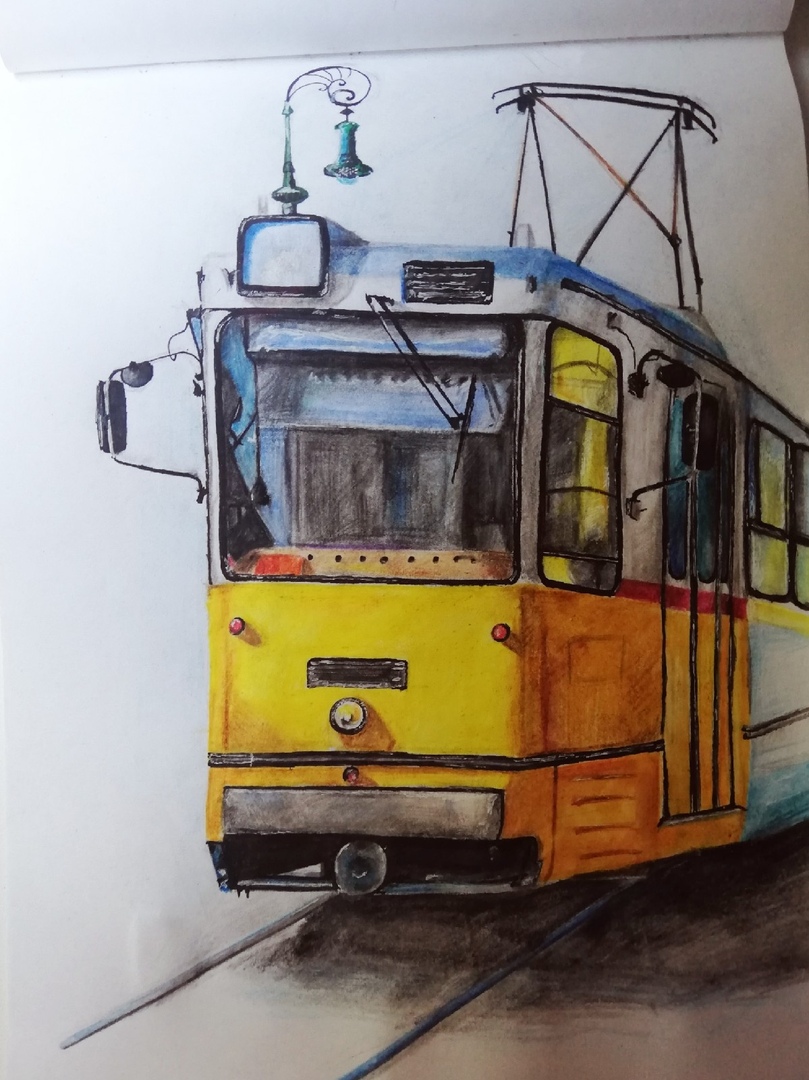 Рисунок, с чувством путешествия и желанием увидеть мир в милой и интересной поездке на трамваи или поезде!