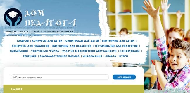 Общероссийское объединение «Дом Педагога» https://dom-pedagoga.ru/ на протяжение длительного времени занимается организацией дистанционных конкурсов по IT-технологиям для дошколят и школьников, а также их педагогов. Основатели проекта постоянно сотрудничают с образовательными учреждениями, которые действуют на территории России, независимо от региона присутствия, и смогут передать обязательные материалы всем заинтересованным лицам в странах СНГ. Имея в своем активе немалое число блестяще проведенных мероприятий самого различного уровня и солидной практический опыт, сотрудники объединения готовы гарантировать отличное качество предоставляемых материалов и обеспечить награды (грамоты, дипломы, сертификаты и прочее) для участников мероприятий и победителей.