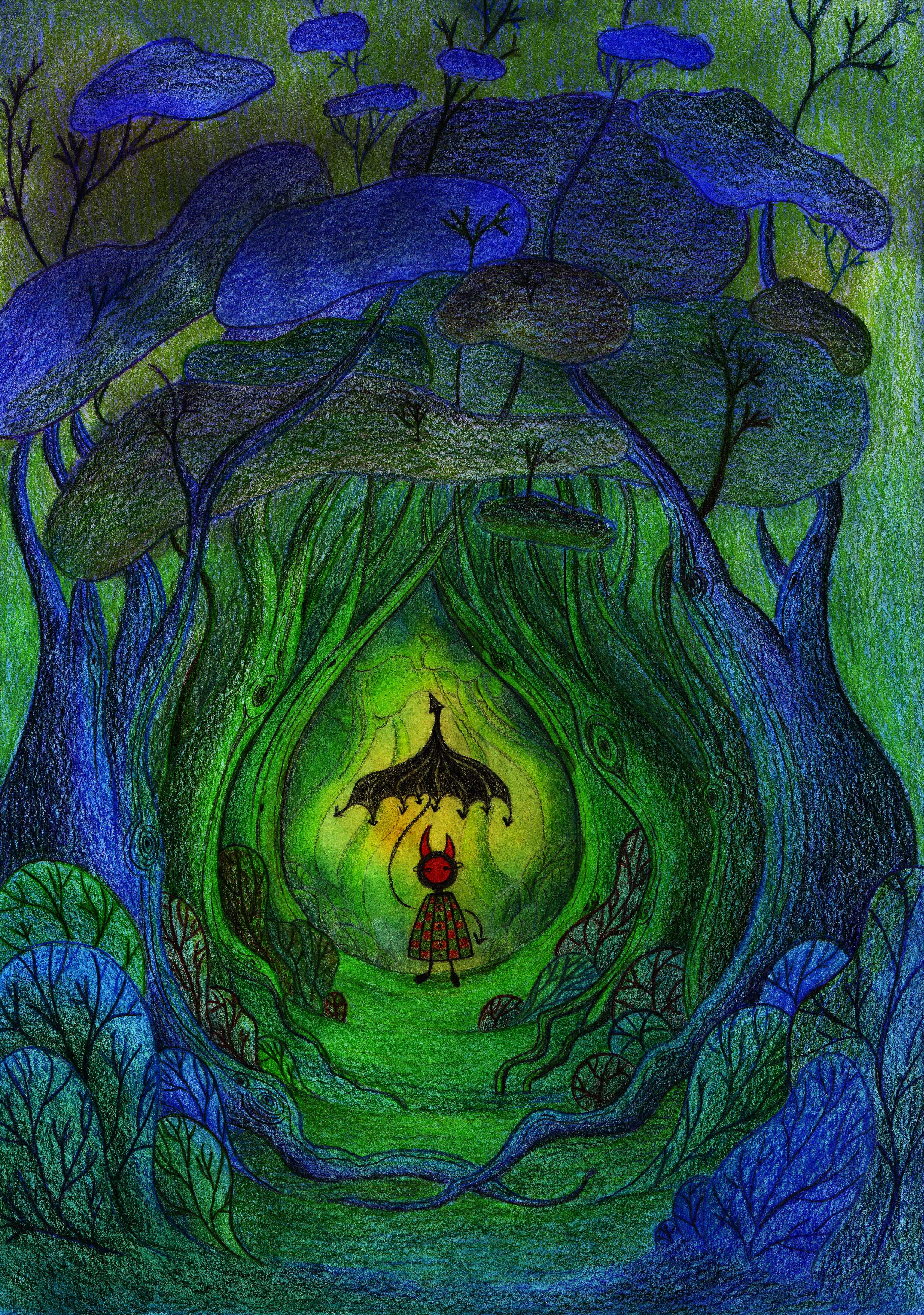 Как известно, у этих деревьев вместо листвы тучи. Люцик уже приготовился.